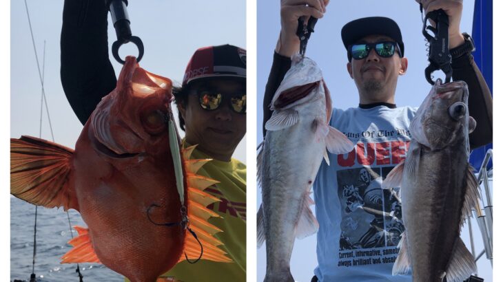 初夏を思わせるような暑さの中、隠岐の島海域に行ってきました!今日は、釣具メーカーウロコファミリーさんがボコボコ釣られてました!船がよく流れたので終日アタリも多く楽しめました。
