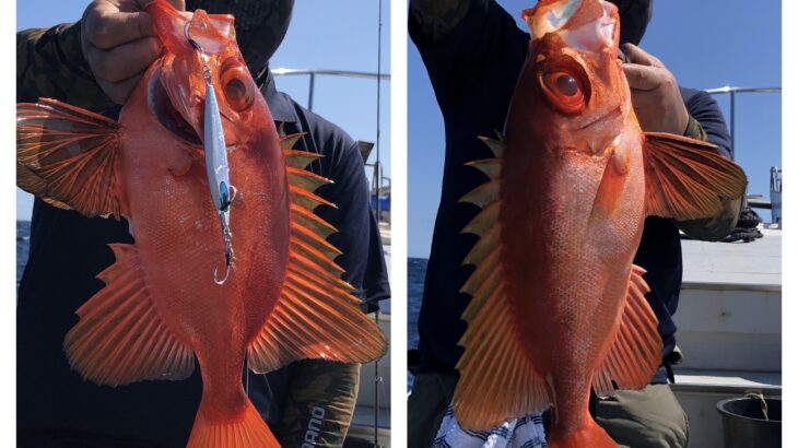 快晴ベタ凪の中、隠岐の島に行ってきました!前日に引き続き釣具メーカー『ウロコ』のヘビーユーザーさん達が2日間連続で、レンコのウロコまみれになってました、、、笑。その中でも、良い魚を抜いてました。