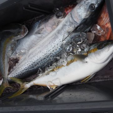 11月17日 東寄りの風が強まる予報だったので、隠岐の島を諦め近海のジギングになりました!日本海にしては、潮の流れがとても速く根魚が全く釣れない状況でしたが、回遊魚達の活性はとても高く狙えばエンドレスに釣れる感じでした💦