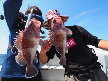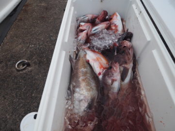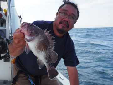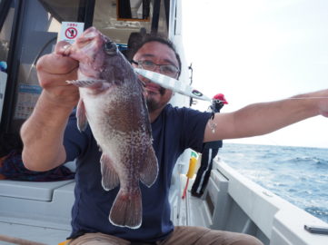 9月19日(土) 5名様の貸切でタラ釣りに行く予定でしたが、シケのため150mまでの中深海ジギングに変更してタヌキ、アラを狙いました! アラ8.5キロ、コアラ、タヌキ50匹、レンコでした。