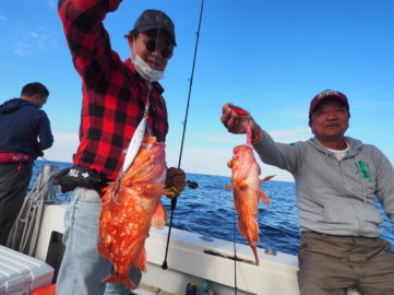 - 10月18(日) 隠岐の島ジギング! 今日は、島前方面に行って来ました!朝のうちは、アタリも頻繁にありそれなりに釣れてましたが、お昼が近づくに釣れアタリが次第に遠退き終了となりました💦 ヒラメ、ハガツオ、カサゴ、アコウ、ヒラマサ、沖メバル、チカメ、フエフキダイ、レンコでした。