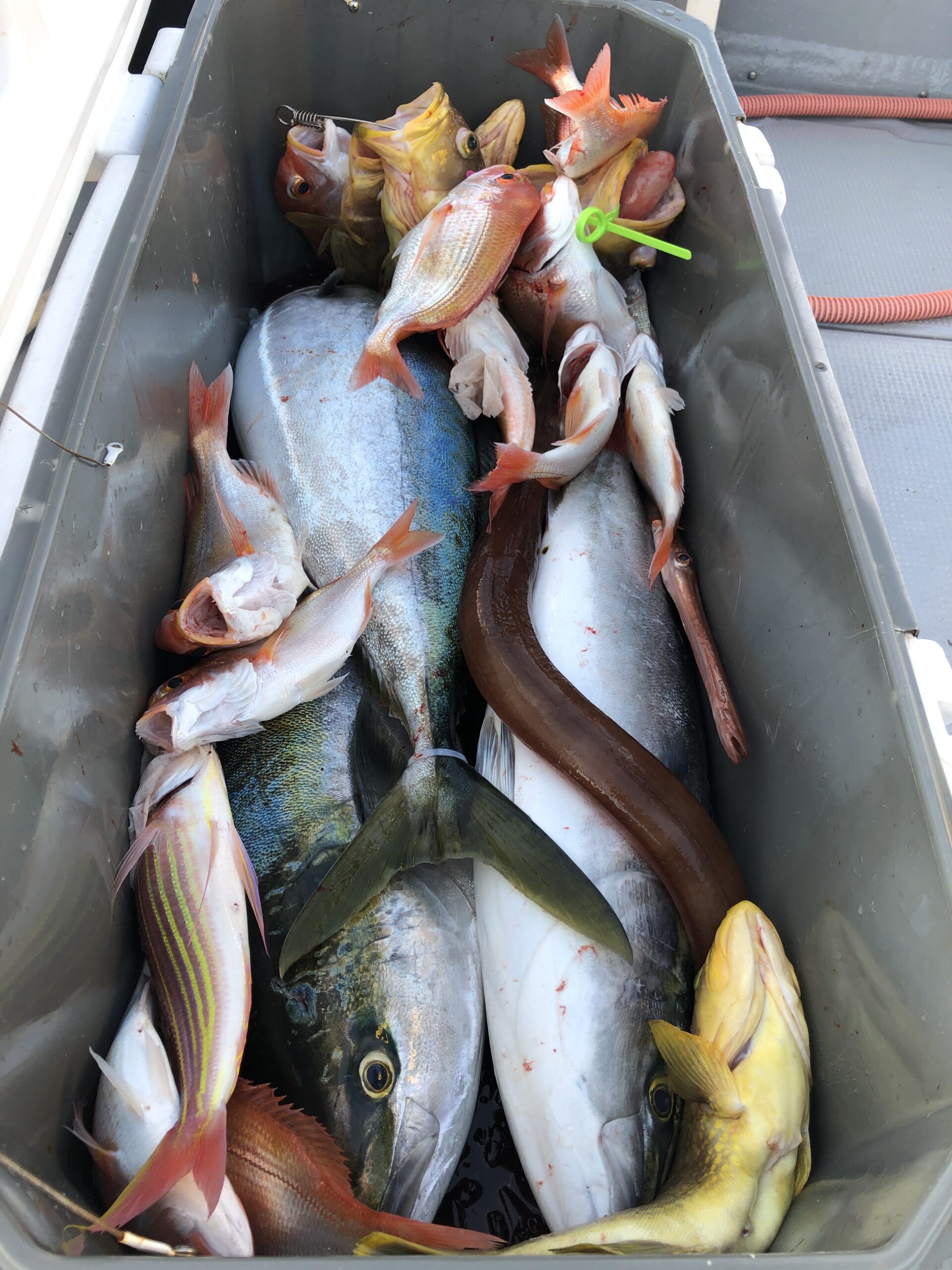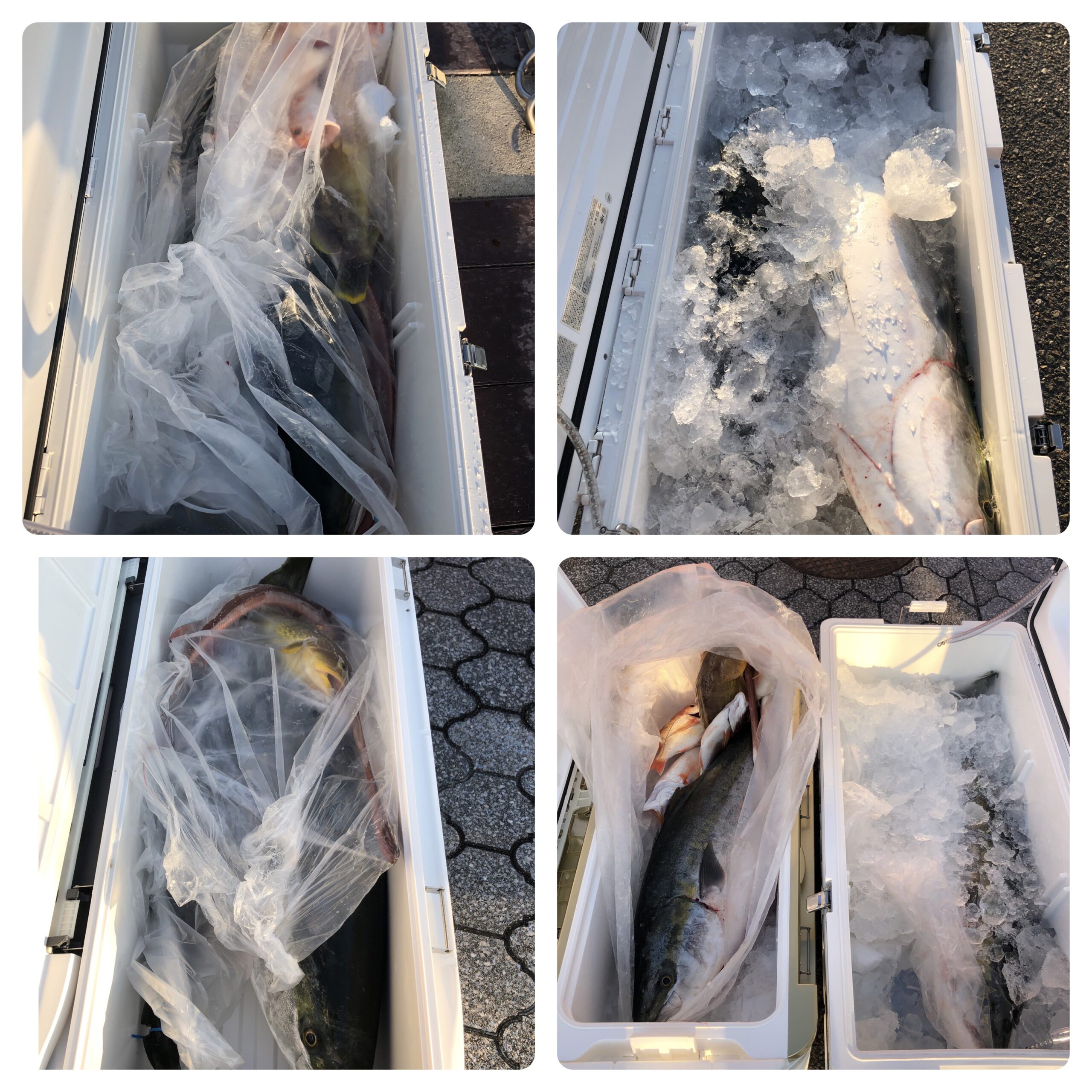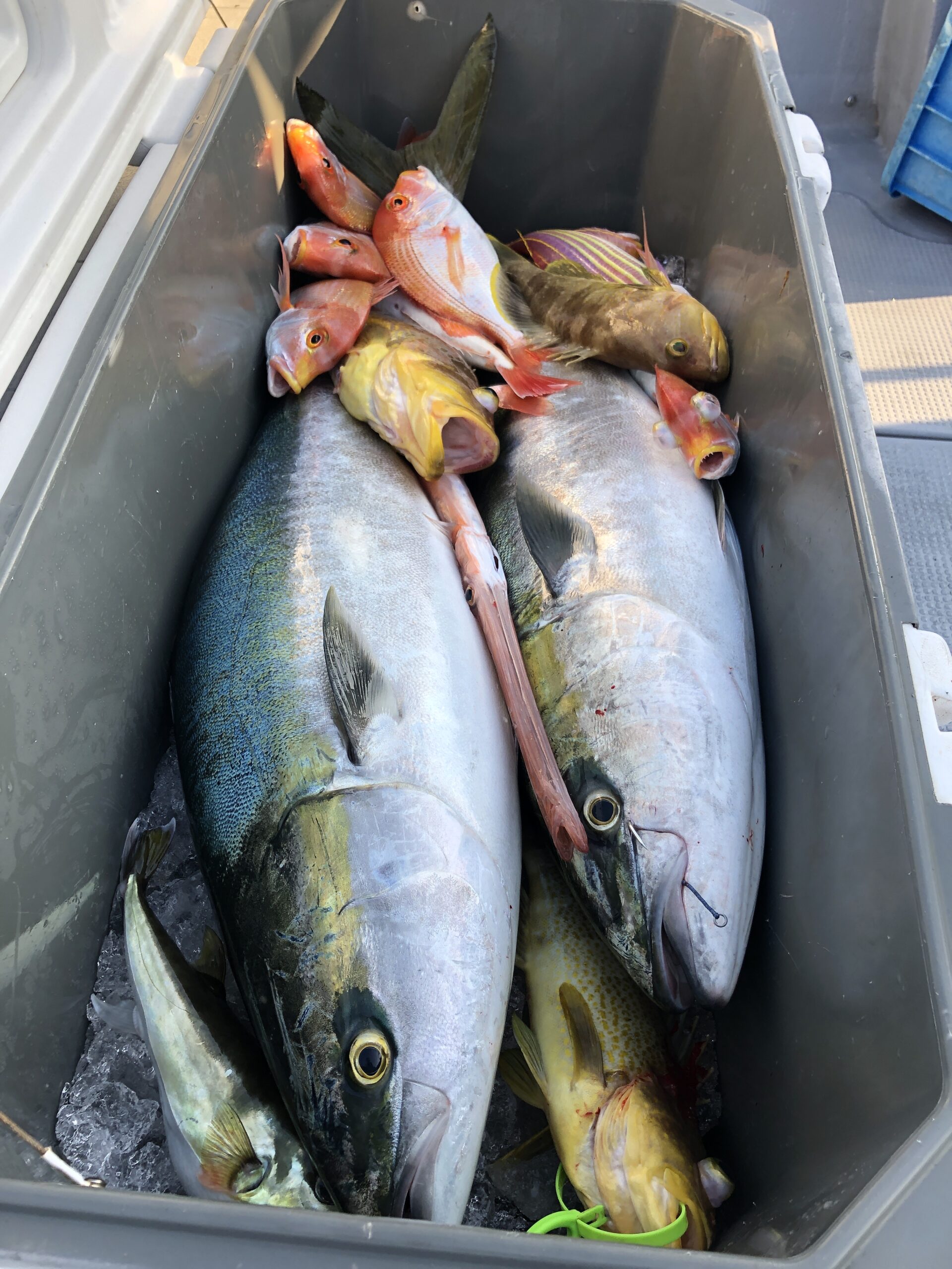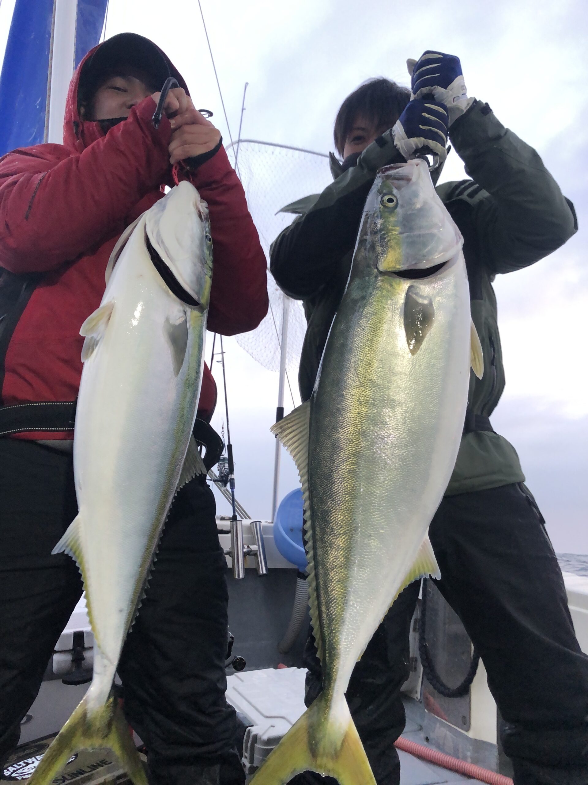 まぁまぁな波の中、釣り納め寒鰤ジギングに行ってきました!運良く途中に青物の高反応をみつけ連続ヒットしましたが、この波に乗れなかった人は、、修行の道に(汗)。全員安打ならずでしたが根魚がポロポロ釣れたので、年末年始の酒のアテにしてもらいました。鰤15キロ〜9キロ6本、ヤガラ、アオハタ、レンコ、ホウボウ、ウッカリでした。今年も、沢山のお客様にご乗船いただき誠にありがとうございました!来年もよろしくお願い申し上げます。
