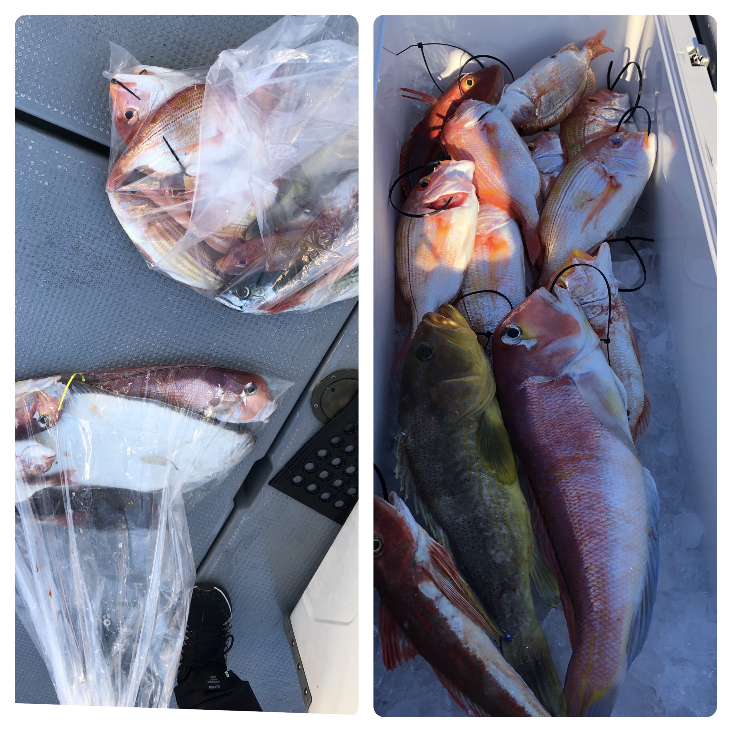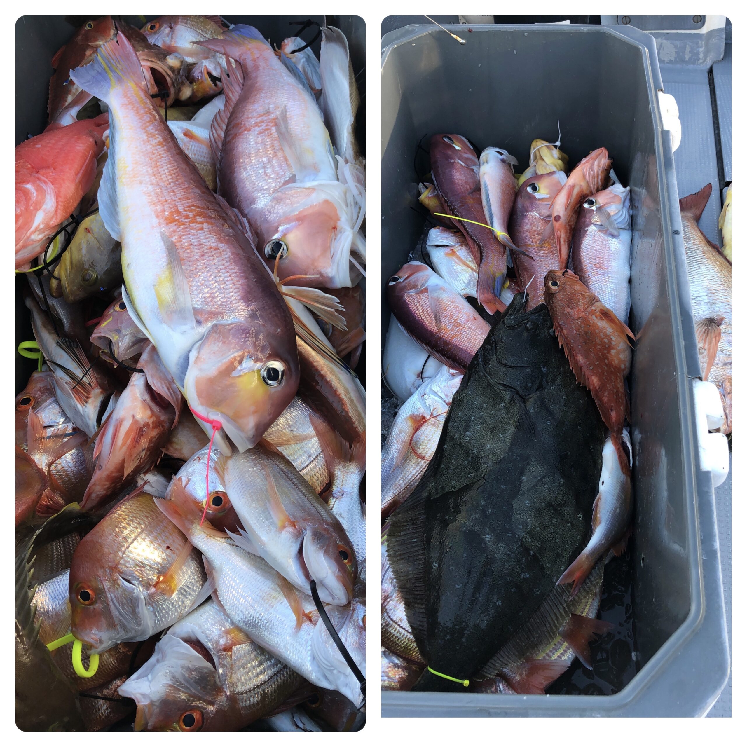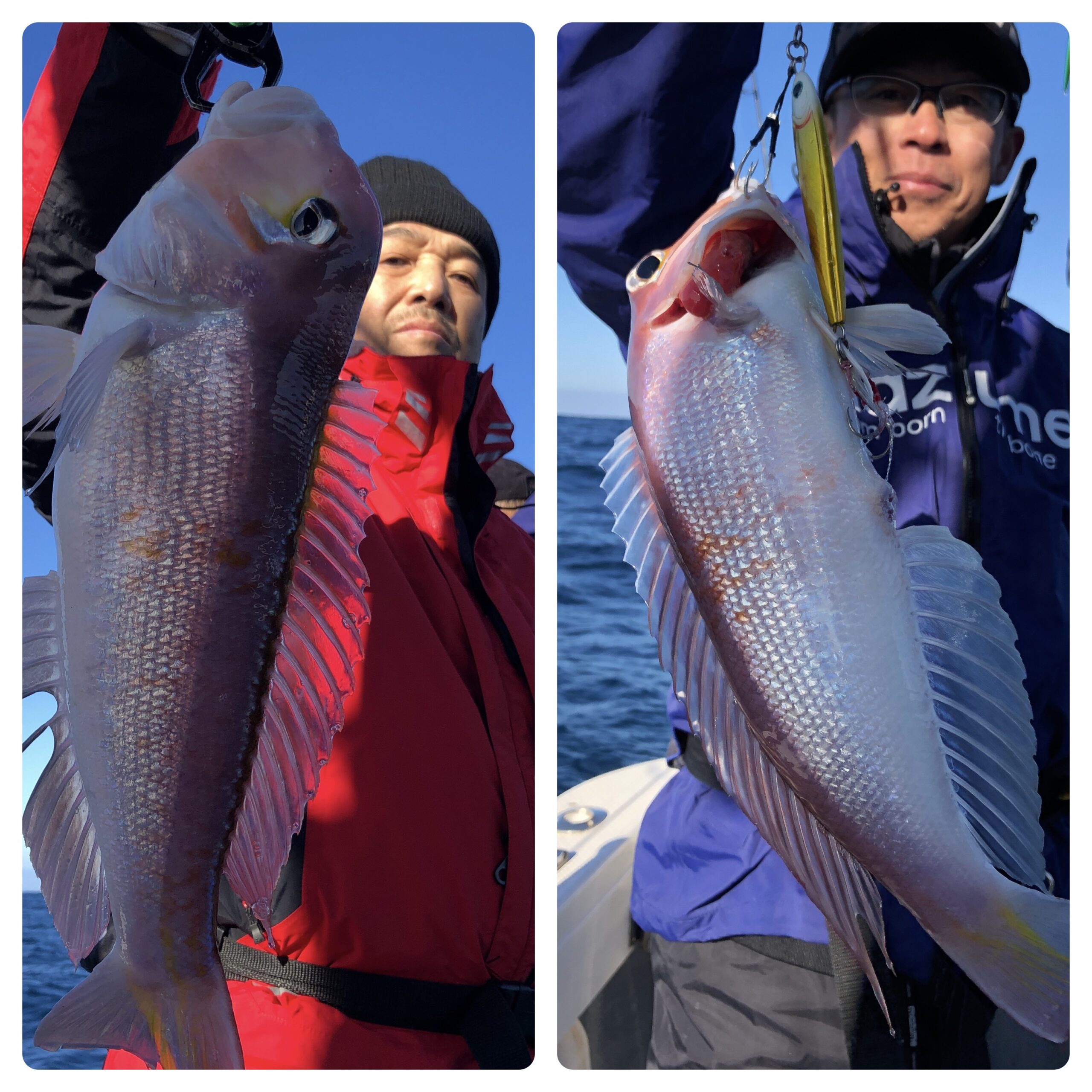 久しぶりの凪の中、寒鰤ジギングに行きましたが不発に終わりました、、、汗。みなさん途中からお土産確保の根魚に夢中になりよく釣られてました。アマダイ8匹、ヒラメ、イトヨリ、アオハタ、ウッカリ、レンコでした。