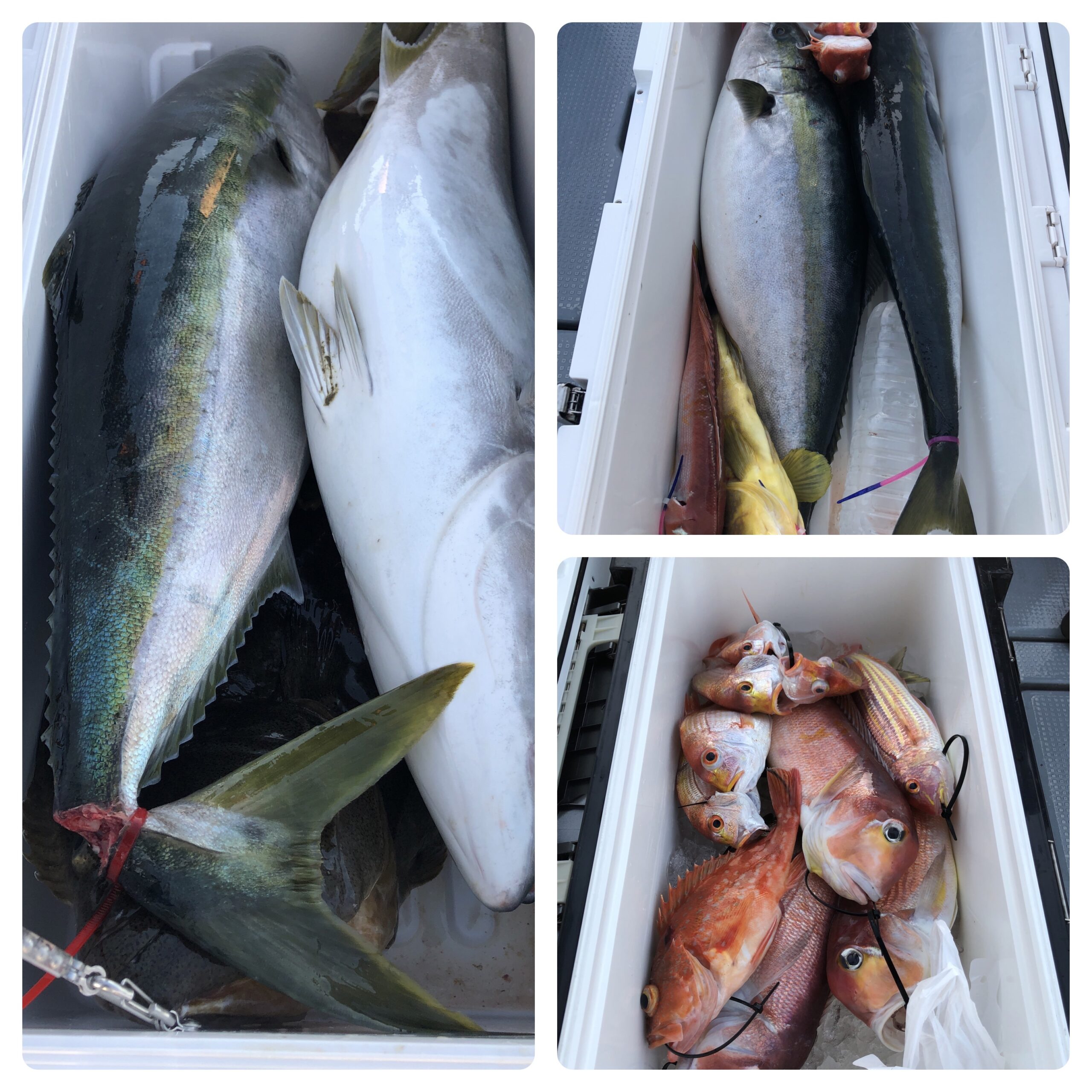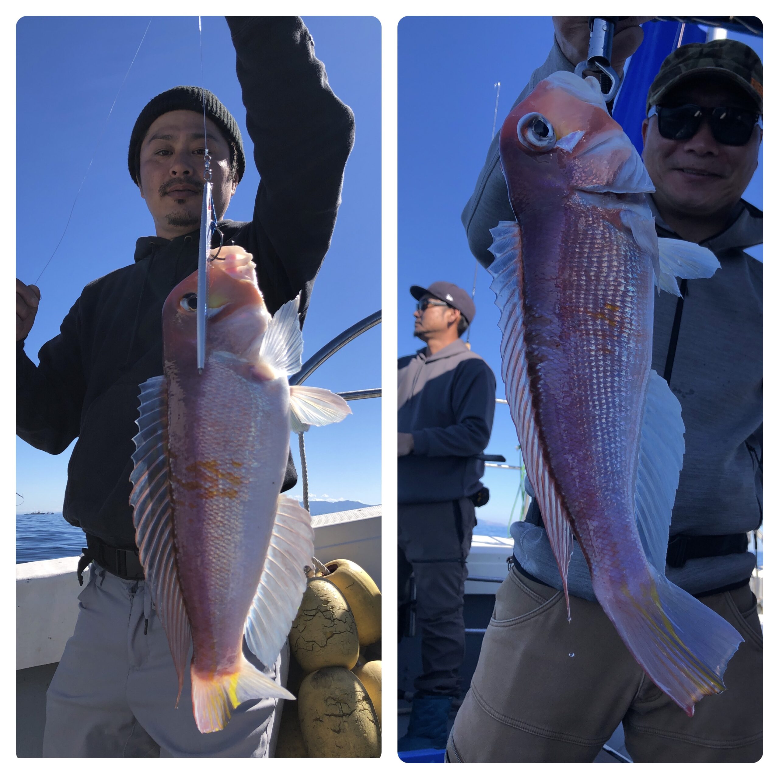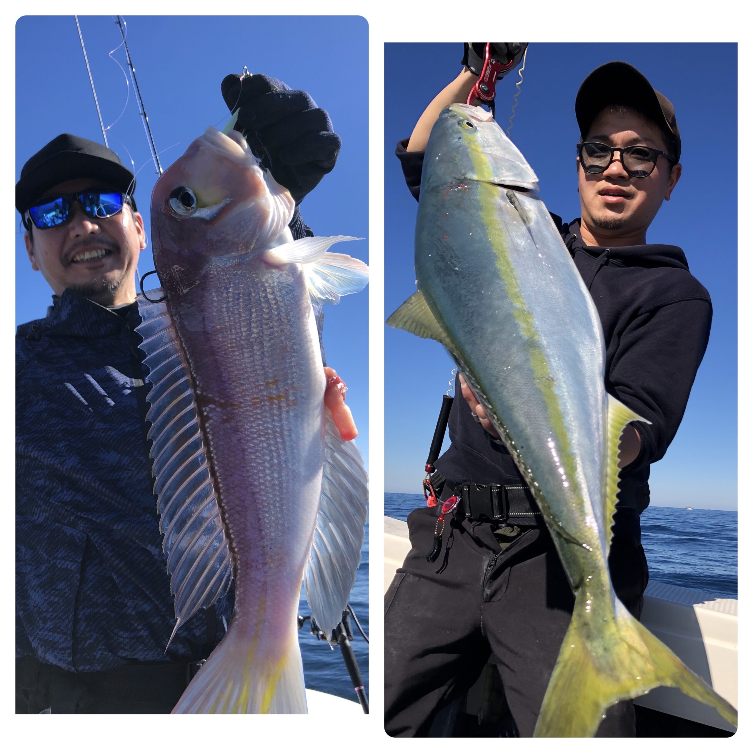 快晴ベタ凪の中、寒鰤・根魚狙いで出船しました。昨日よりは鰤の個体反応もあり雰囲気はありましたが、辛抱出来ず根魚を狙い出すとなかなか鰤との御縁は、、、汗。一日中シャクリ切った女性アングラーさんがよく釣れました。鰤8〜9キロ3本、マルゴ3本、アマダイ8匹、ヒラメ2枚、アオハタ、レンコ、イトヨリ、ホウボウ、ムシカレイでした。