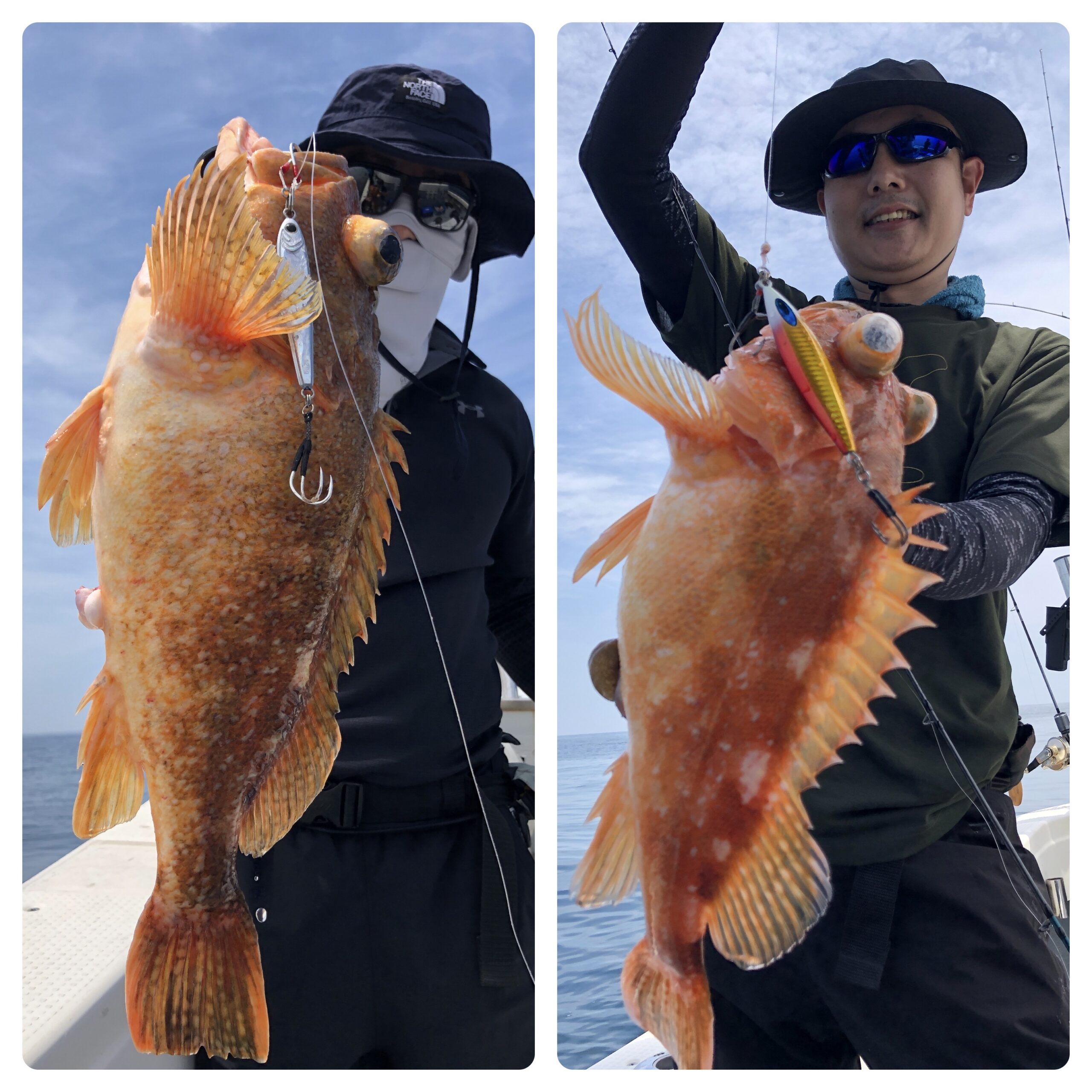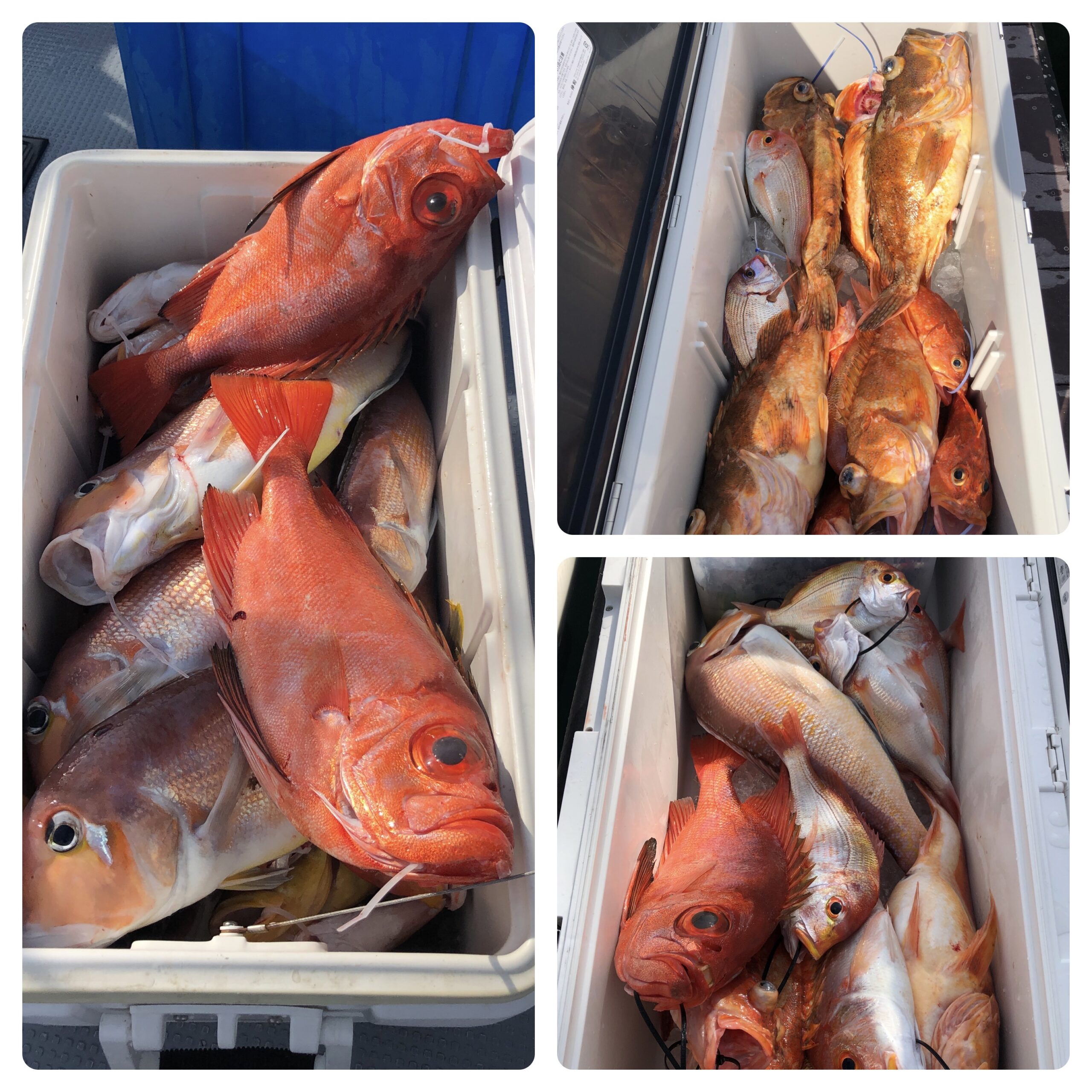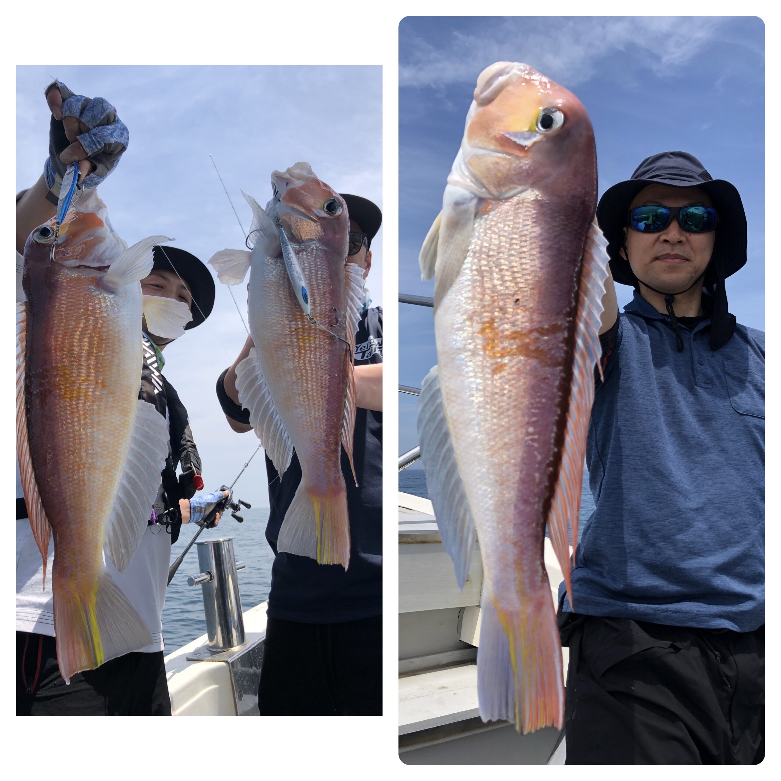 快晴ベタ凪の中、隠岐の島に行ってきました!朝イチのチカメ狙いはコケましたが、ポイント移動後はパターンを攻略できた方は良く釣れました。その後潮が動き徐々に誰でも釣れるようになりました!アマダイ9匹、チカメ5枚、ウッカリ(ゴジラ級)多発!アオハタ、真鯛、レンコでした。
