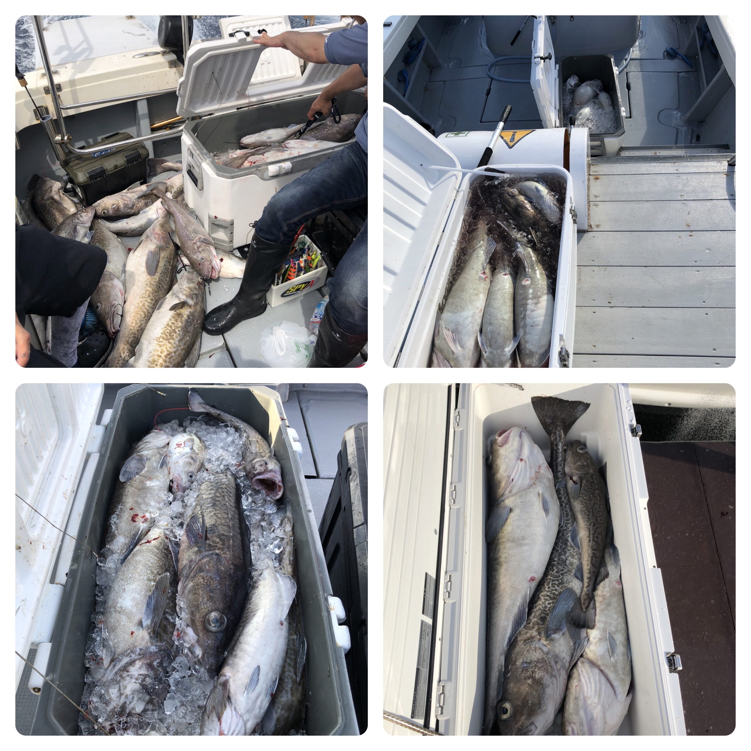 快晴ベタ凪の中、隠岐の島にタラジギングに行ってきましま!この時期にしてはタラの活性はイマイチでしたが、竿頭9本、全員安打でタラ釣りを楽しめました。あまり釣れなかった方は、軽めのジクを使用しトラブルが多発してたのが原因でした。ジクは最低400g、500〜600gが最適です。もう白子が入ってました。