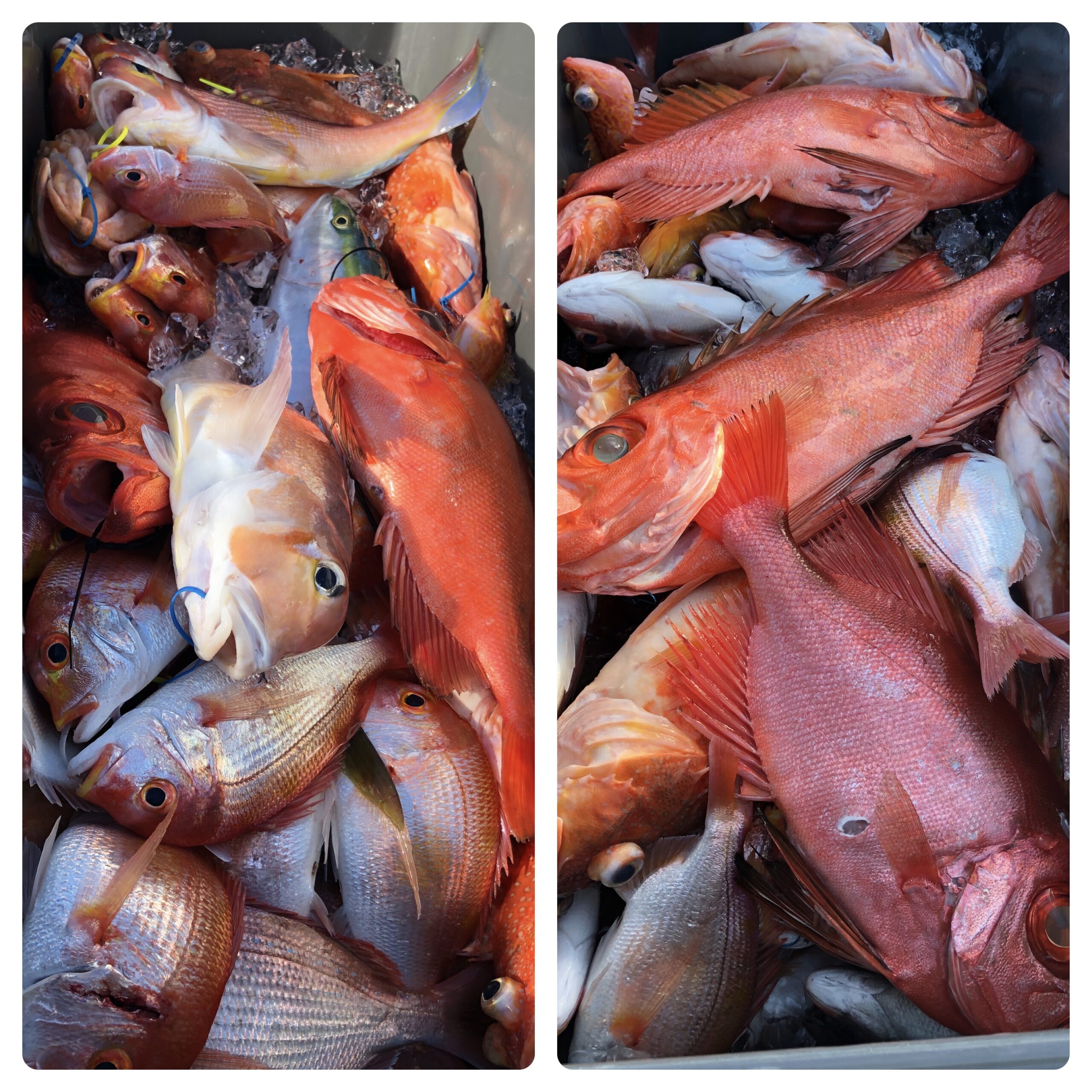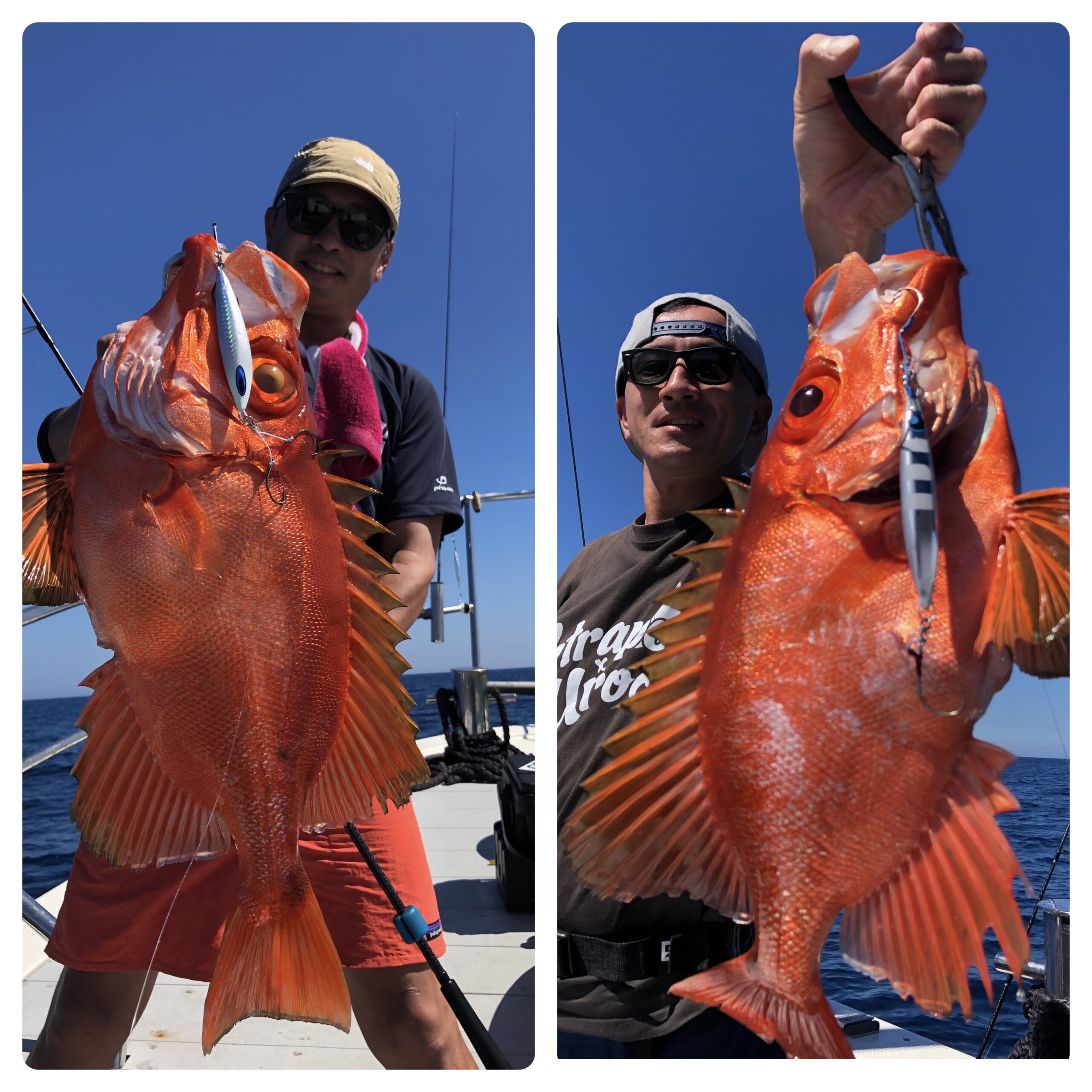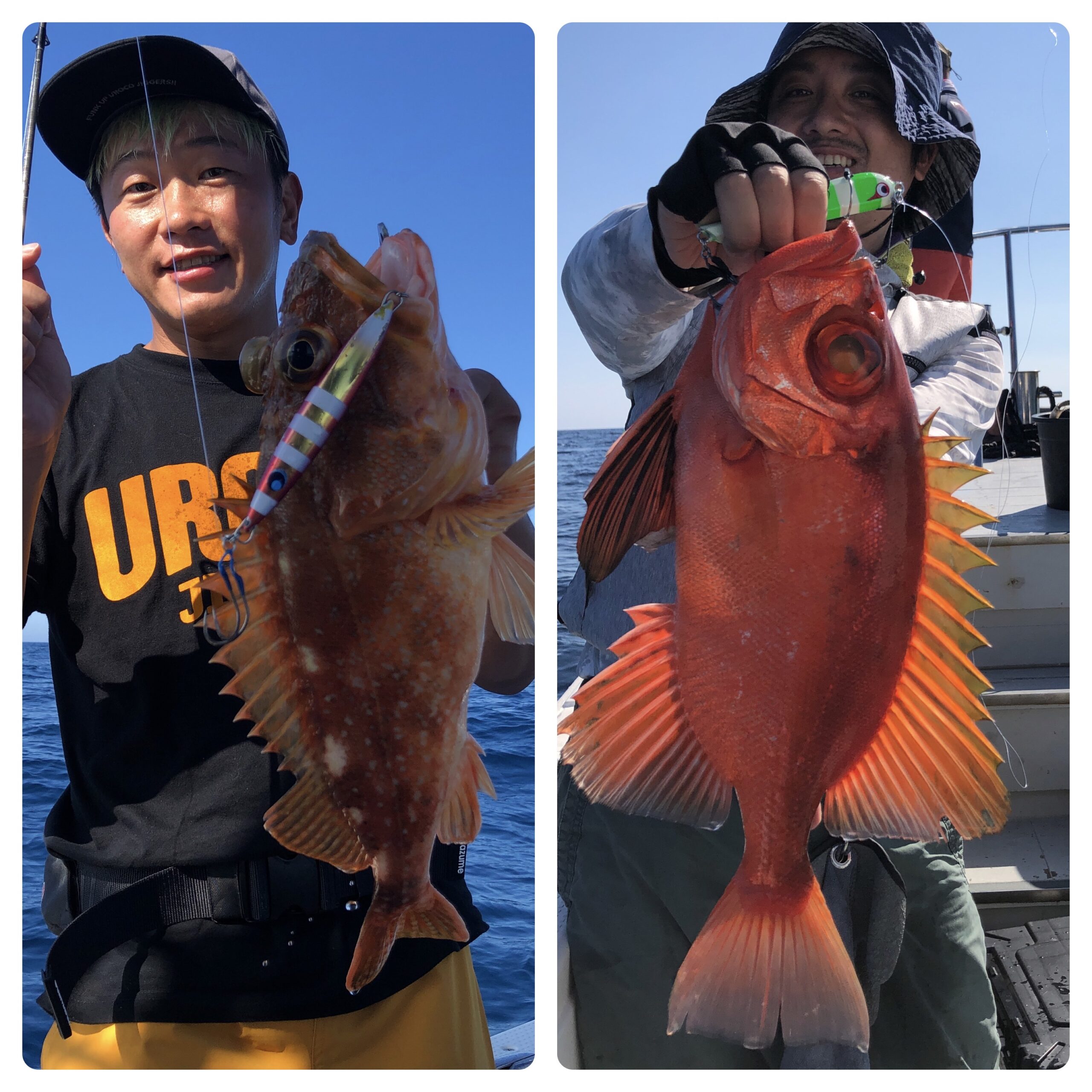 快晴ベタ凪の中、隠岐の島に行ってきました!前日に引き続き釣具メーカー『ウロコ』のヘビーユーザーさん達が2日間連続で、レンコのウロコまみれになってました、、、笑。その中でも、良い魚を抜いてました。