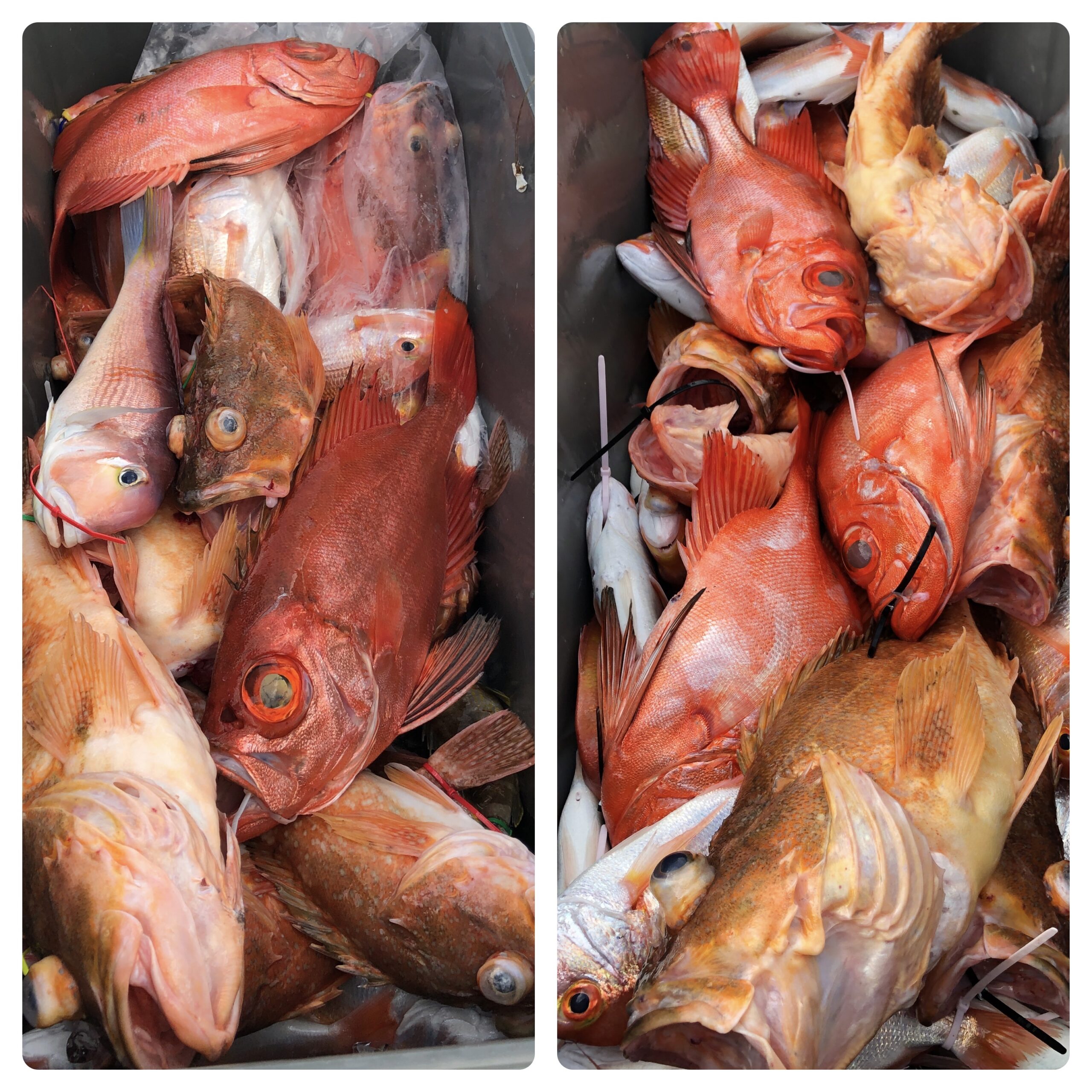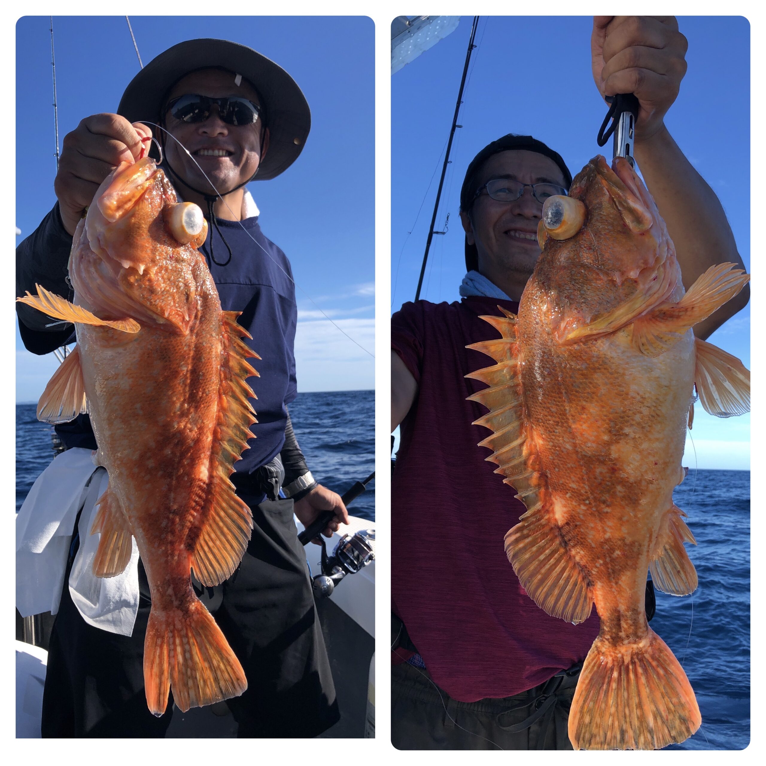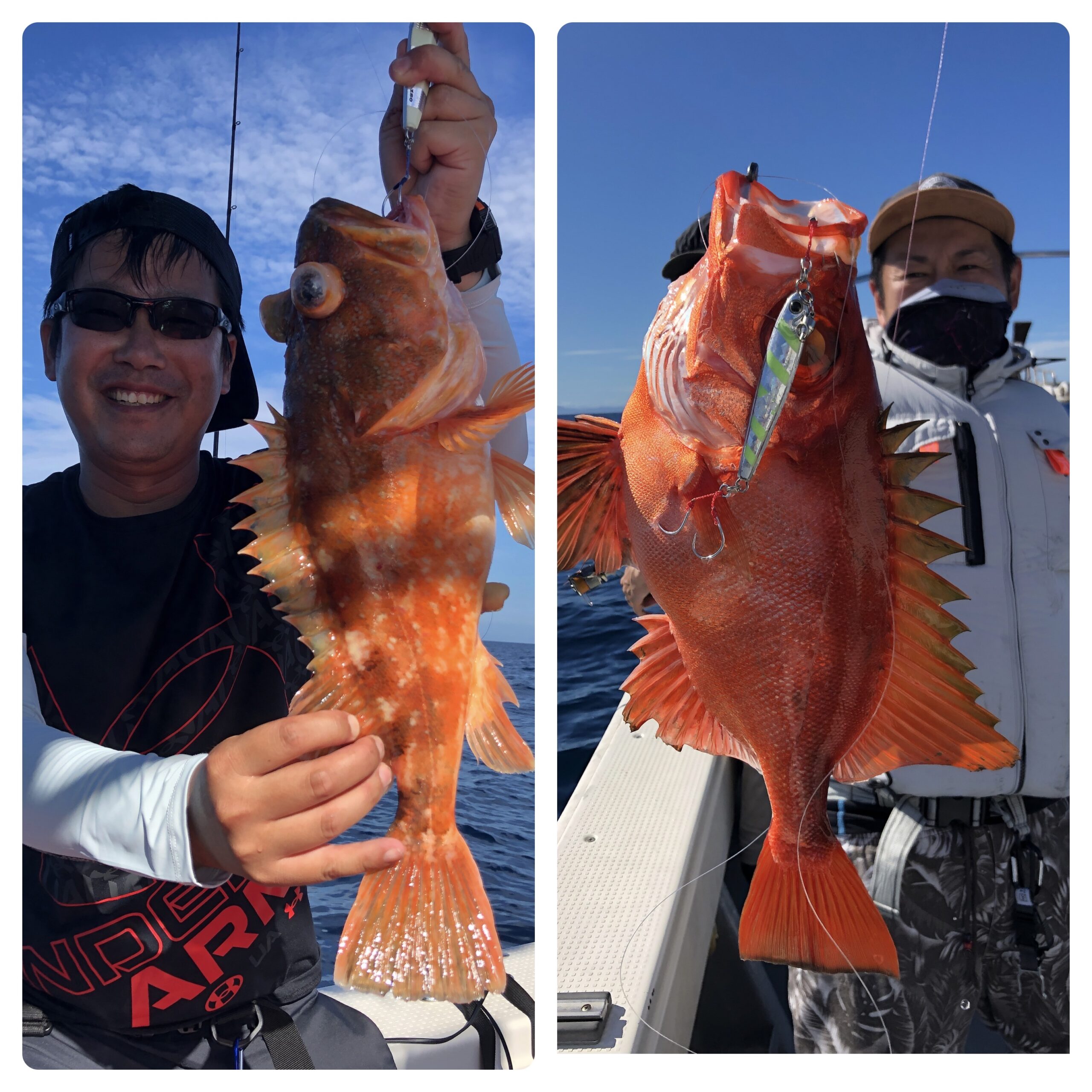 快晴凪の中、隠岐の島に行ってきました!予報に反し風も吹かず終日楽しめました。魚の活性はイマイチで、喰いそうな反応を見つけての繰り返しで何とか良いヤツが釣れました!しかしその釣果の裏にはレンコ担当者の苦労のおかげがありました(笑)