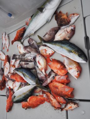 4月21日(日)隠岐の島 島後 スロージギング ラインブレイク多発で惜しくも大型を逃しましたが、暇しなく遊べました!船首、船尾とも同じ釣果で一安心✨