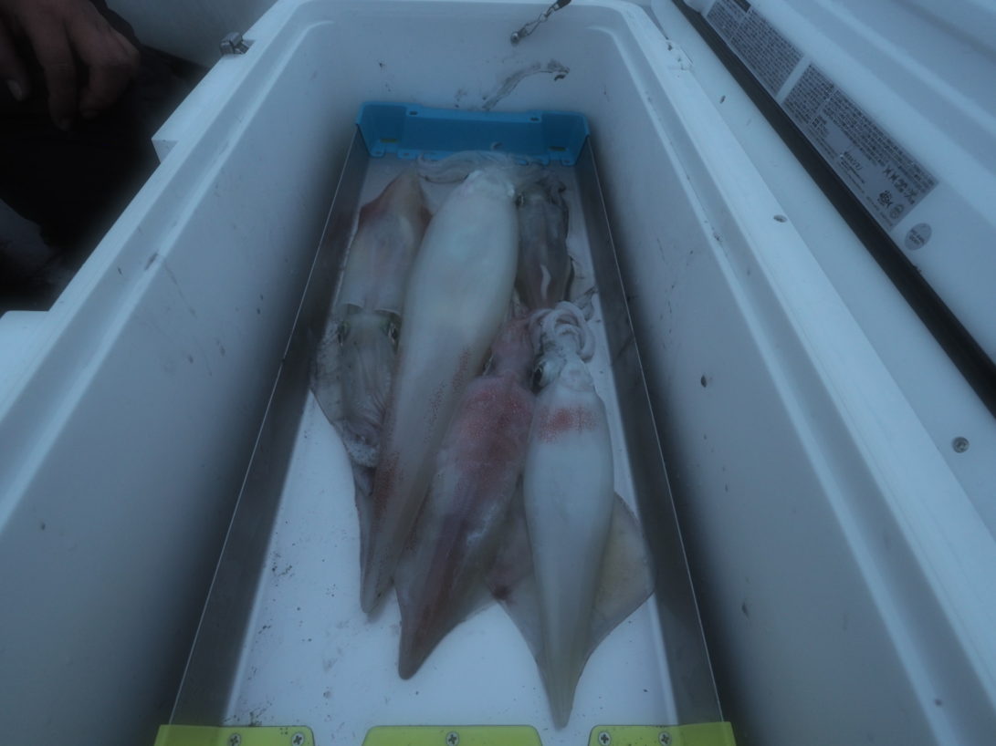 7月3日(金)22時出船深夜便! 本船は、人気船でないので金曜日深夜便は、いつもガラガラ出船です😭お陰で3密を遵守できてます😅けっこうなウネリの中、ポイントに着いて灯りが効き出すといきなりラッシュが始まり、今日は全員3桁の予感😆しかし長続きしなく朝までポツリポツリで終了でした💦 29〜35杯少人数なので個人差は出ず船中174杯でした!