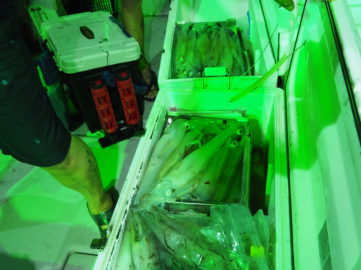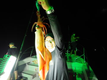 9月4日(金) 金曜日と言う事で、皆さん仕事終わりからの遅め出船でスタート!各僚船からの情報では、今日は良く釣れてるよ!でしたが、本船はさっぱり💦ポイントを何回か変えるも、さっぱり💦僚船Bull Shark🦈 があり得んくらい釣ってたので( 船中1000杯コース)隣を拝借させて頂き、怒涛の入れ喰いに突入!!しかも、良型ばかりで今季最高の釣果でした✨Bull Sharkに「感謝と恩返し 」恩返しです!!しなければ💦 100杯超が多数で、皆さんクーラーに詰め過ぎて正確な数が不明ですが、船中900杯くらいかと🦑💦