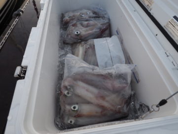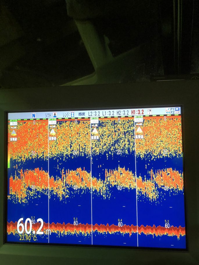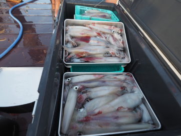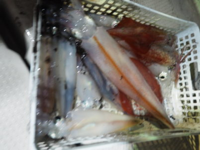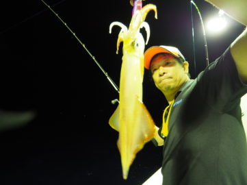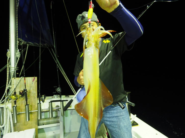 時化模様の為、出船時間を22時に遅らせての釣行でしたが、ウネリが大きく釣り難い状況でした💦でも皆さんめげずに頑張って頂き、8名でトップ68杯 船中338杯釣れました🦑💦