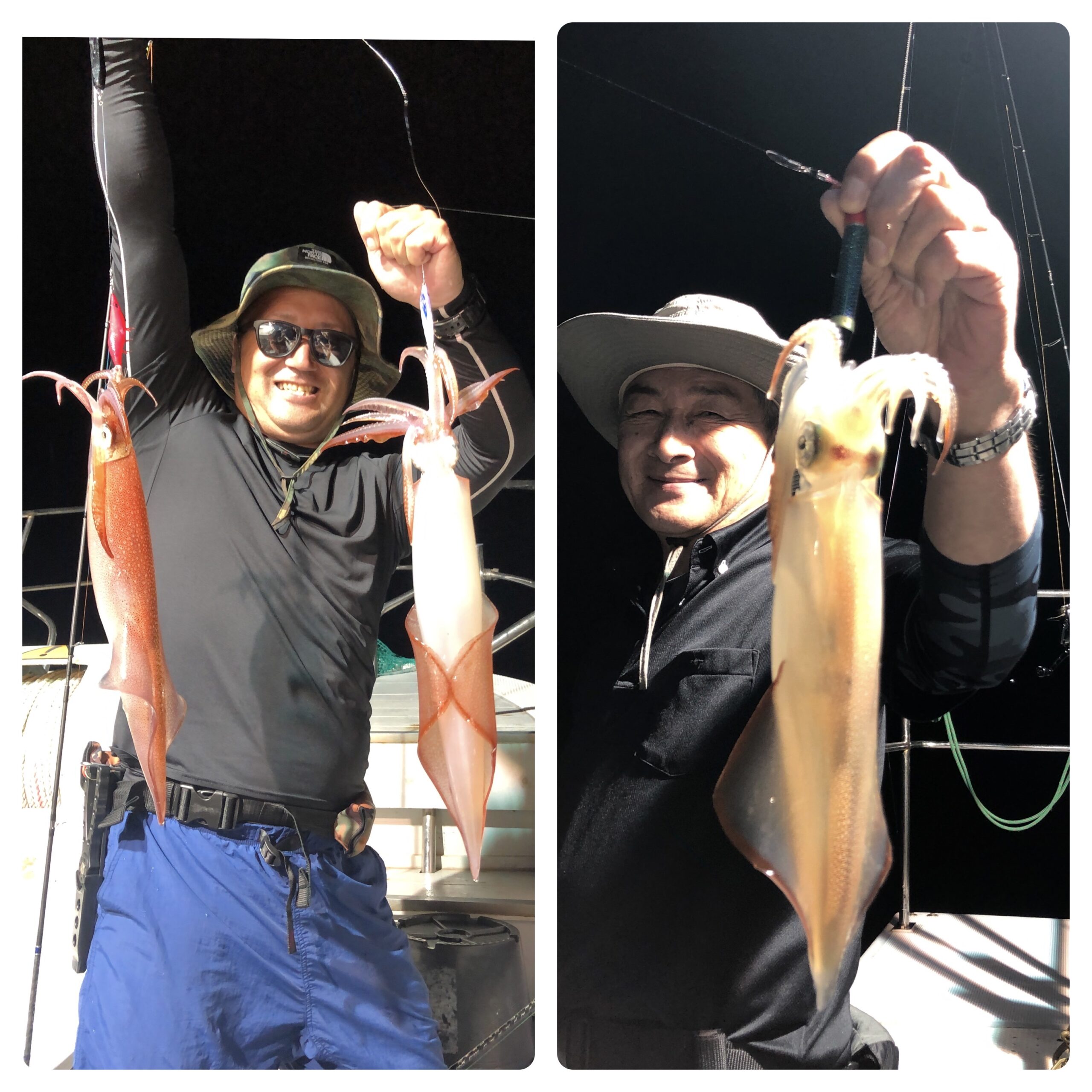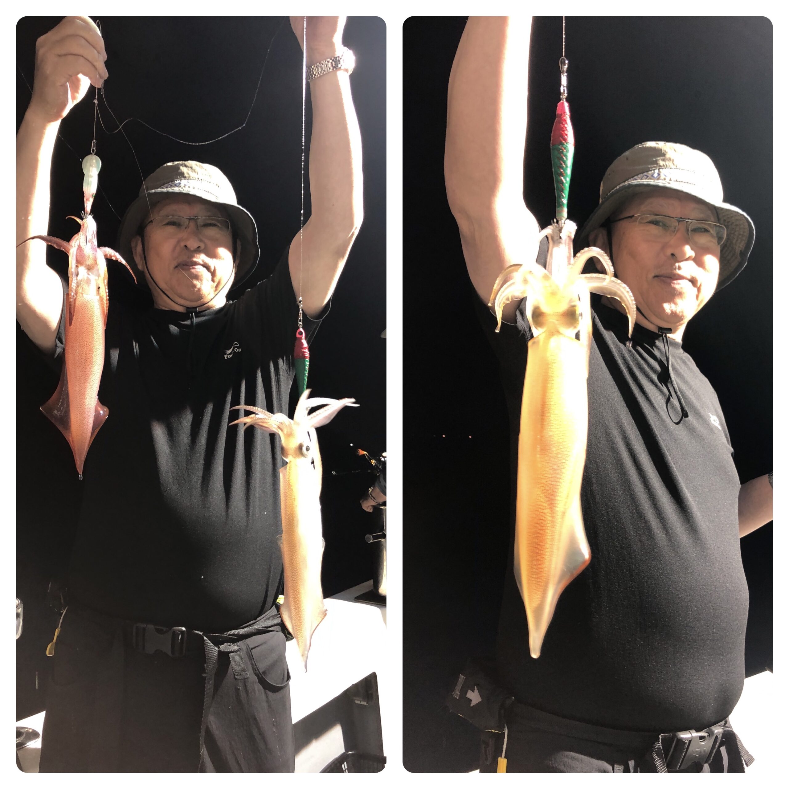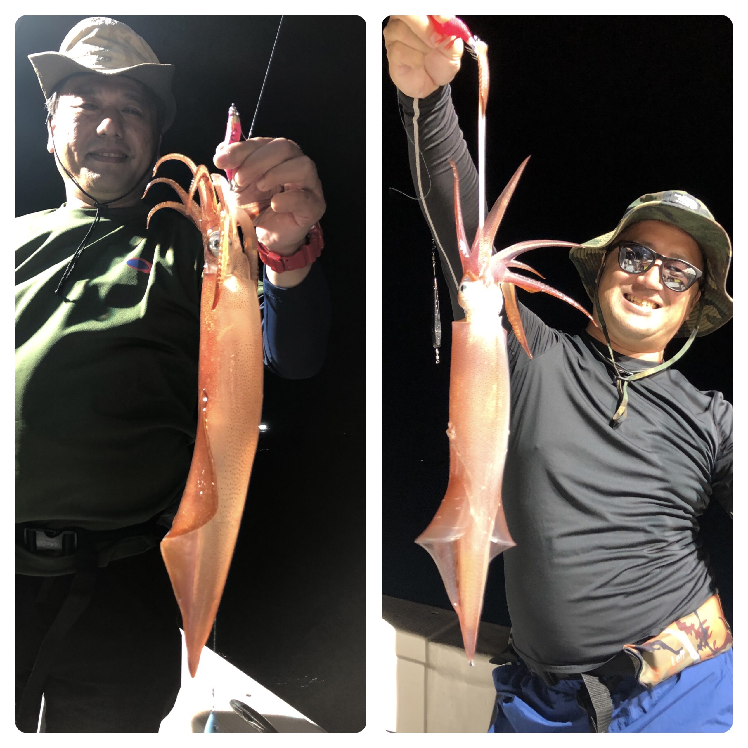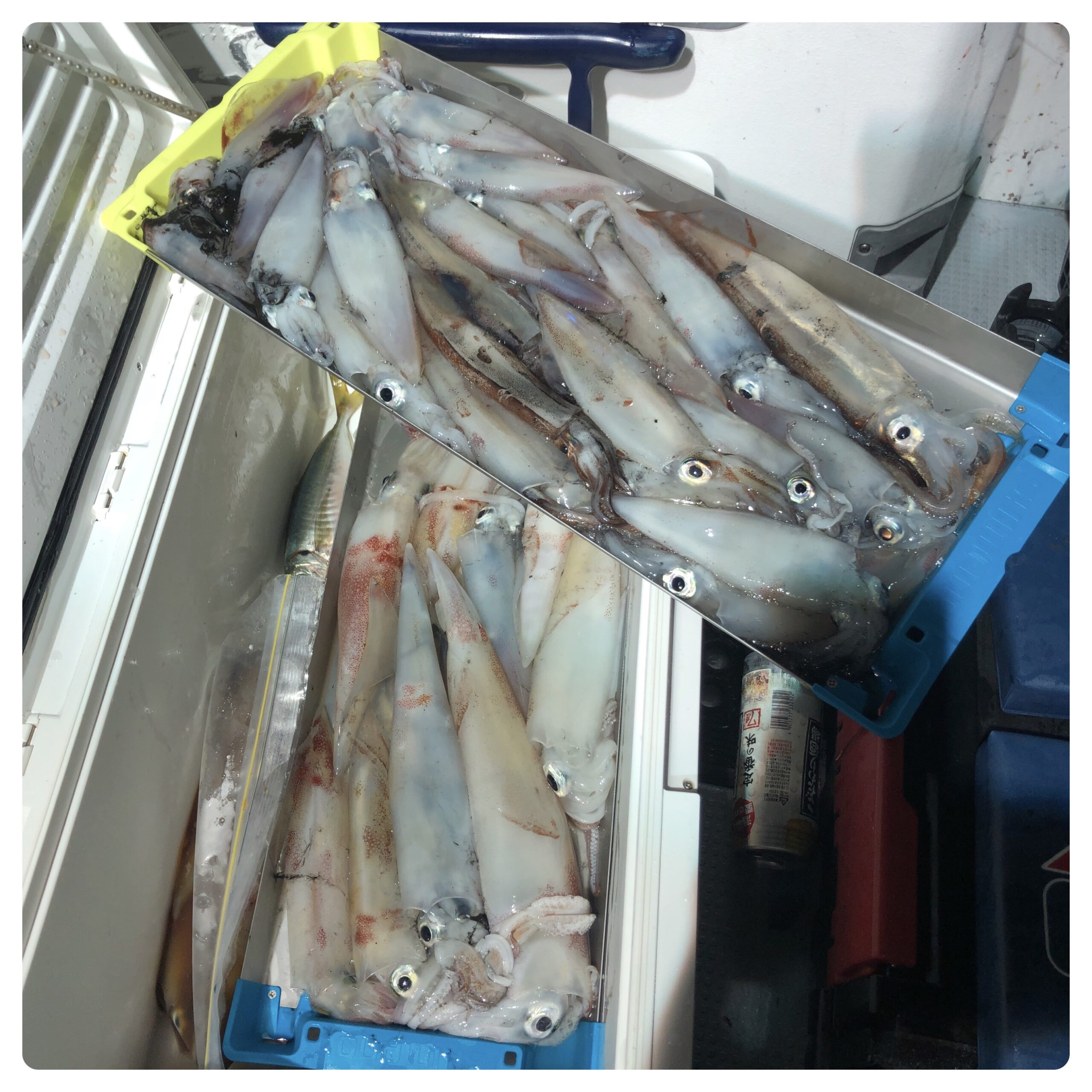 ベタ凪の中、イカ釣りに行ってきました!明るいうちは全く釣れず、、、めちゃくちゃ焦りました(汗)。集魚灯点灯後も釣れずでまたまた焦りましたが、自分と新設備動力(静音)を信じて待ち続けてるとやっと釣れだし一安心しました!前半は型がよく後半からは小さくなりました。白イカ12〜44杯、船中290杯くらいでした。