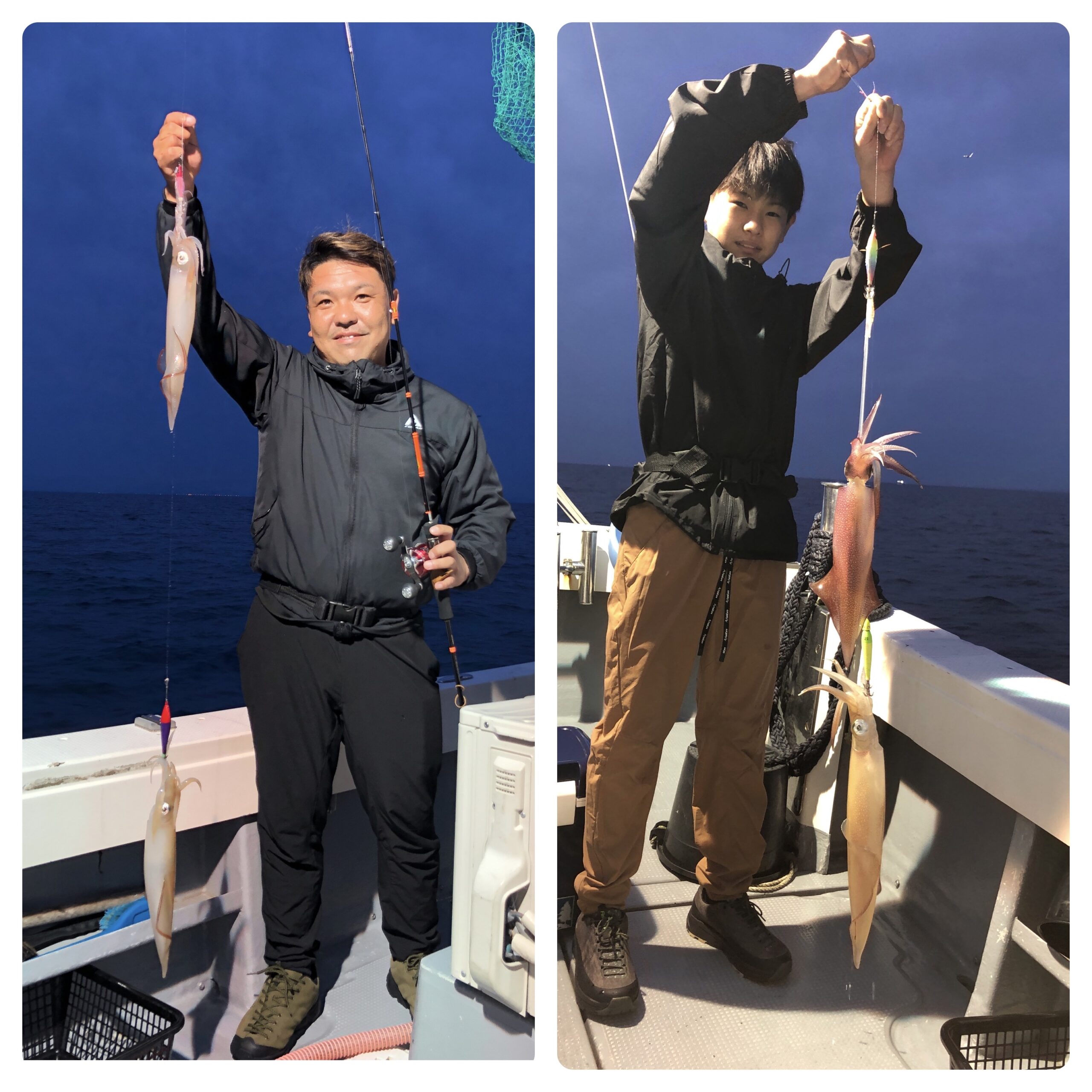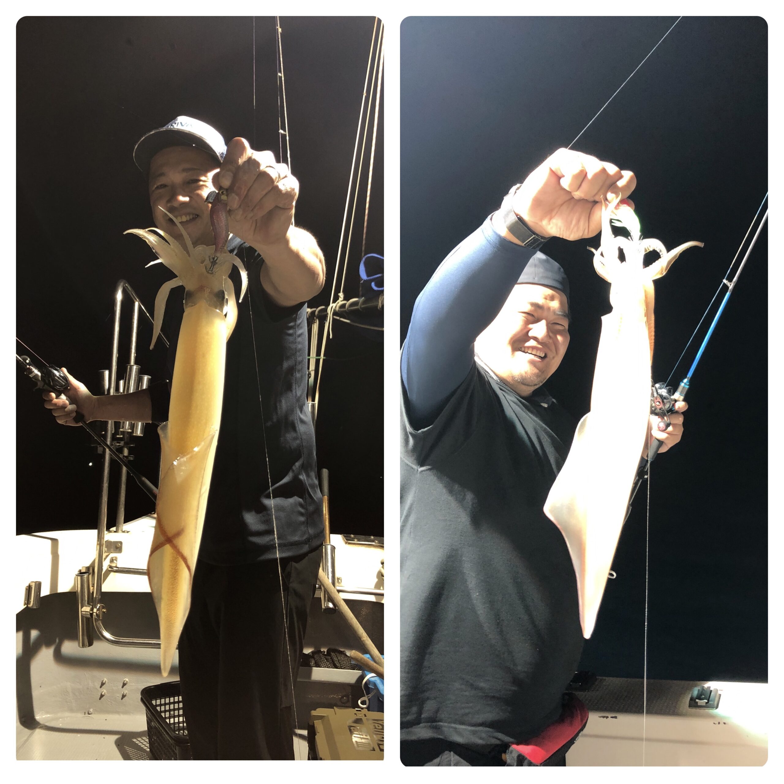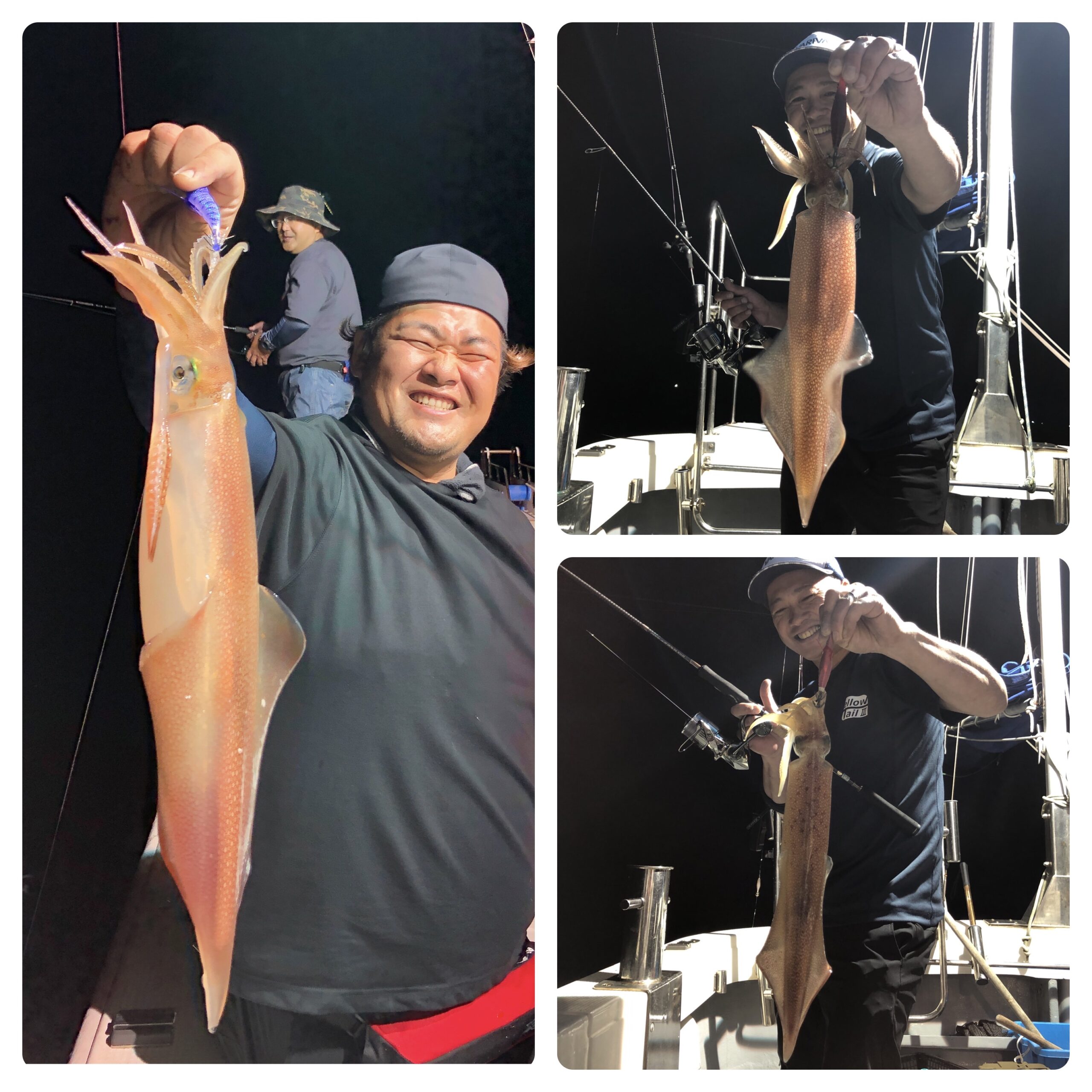 平日なので6名様の少人数出船でイカ釣りに行ってきました!明るいうちはいつも通りに釣れず、集魚灯点灯後から釣れ出しました!初心者の方もコツを掴み数を伸ばしてましたが、途中から雨と風が強くなり、少し早めにの納竿となりました。白イカ55〜25杯。船中250杯杯くらいでした。