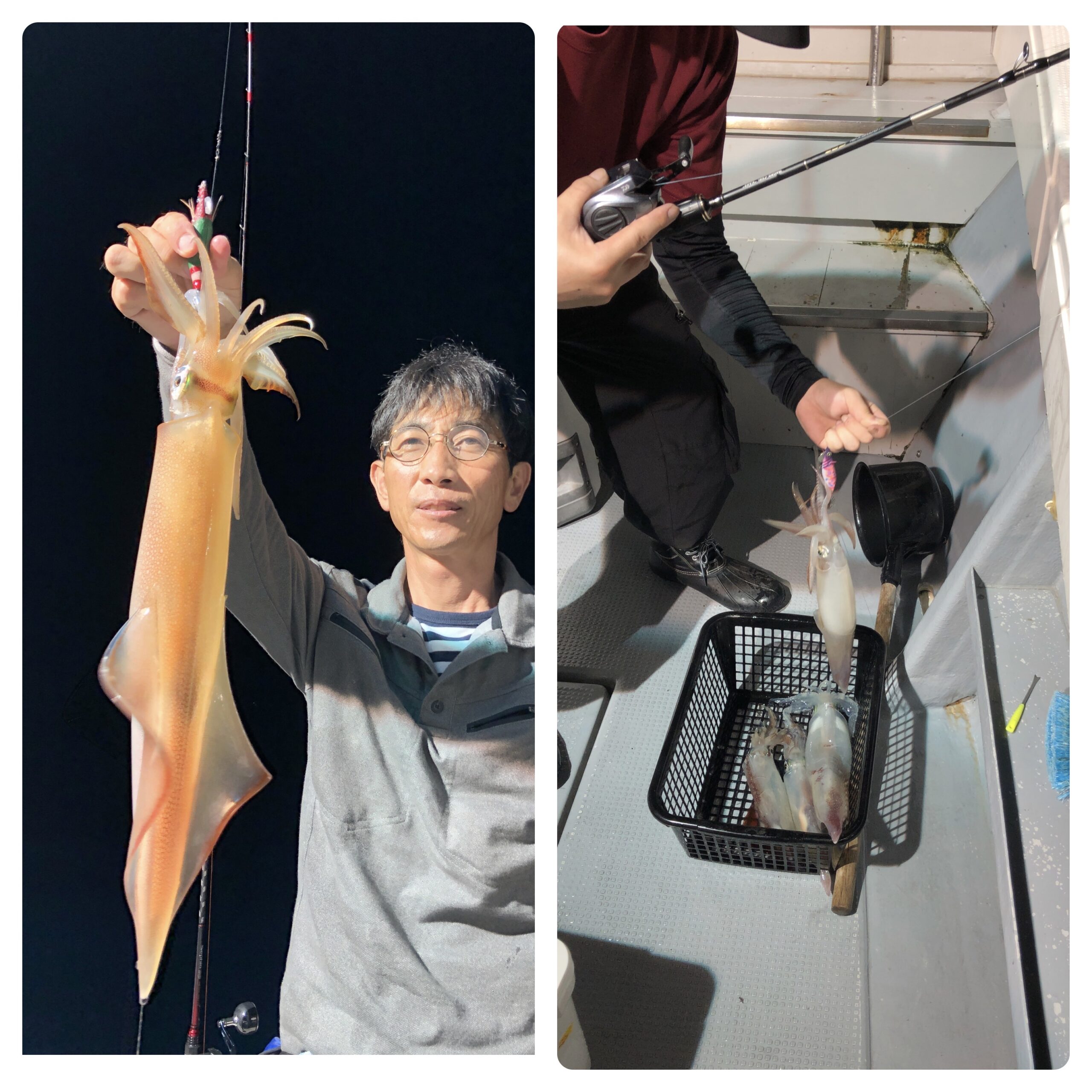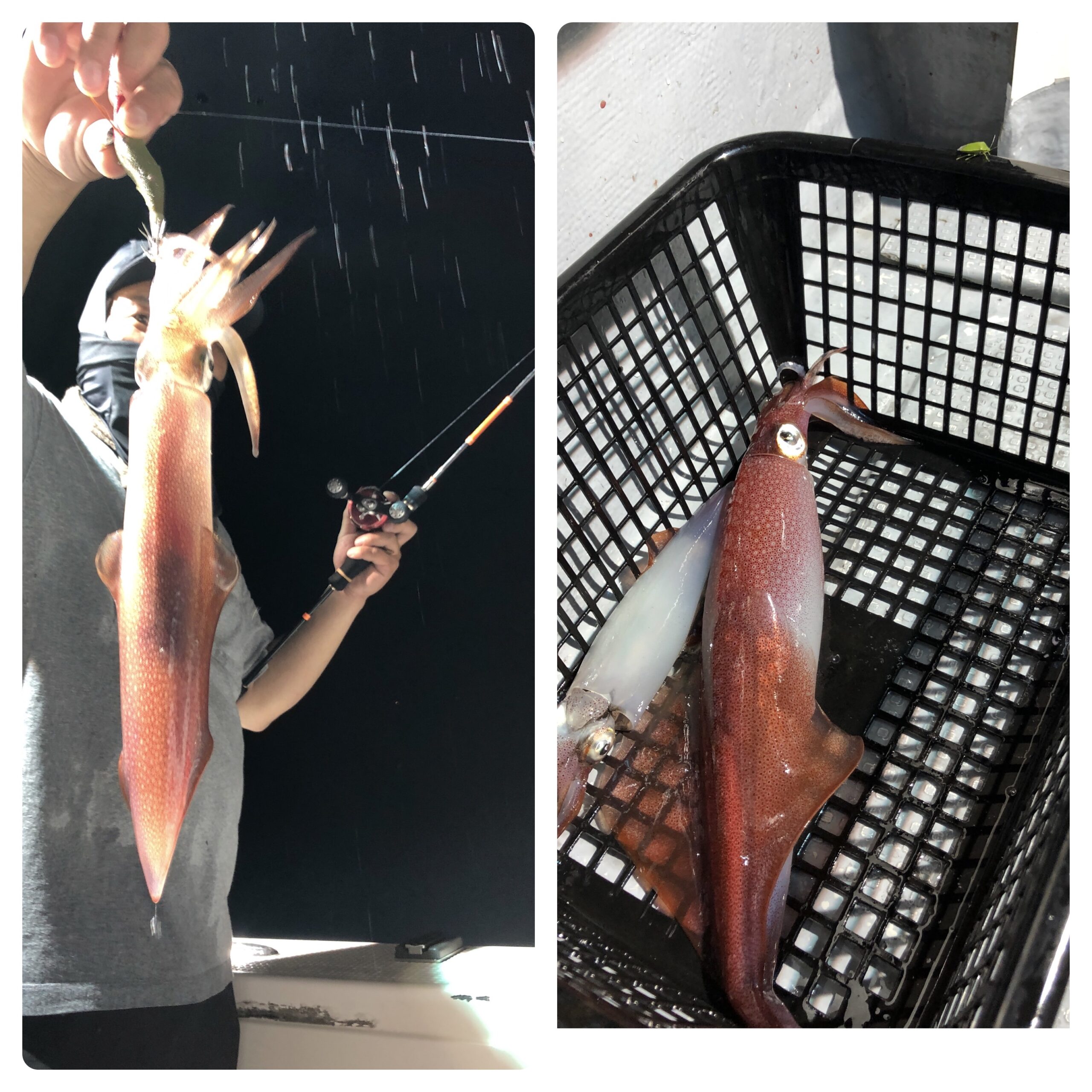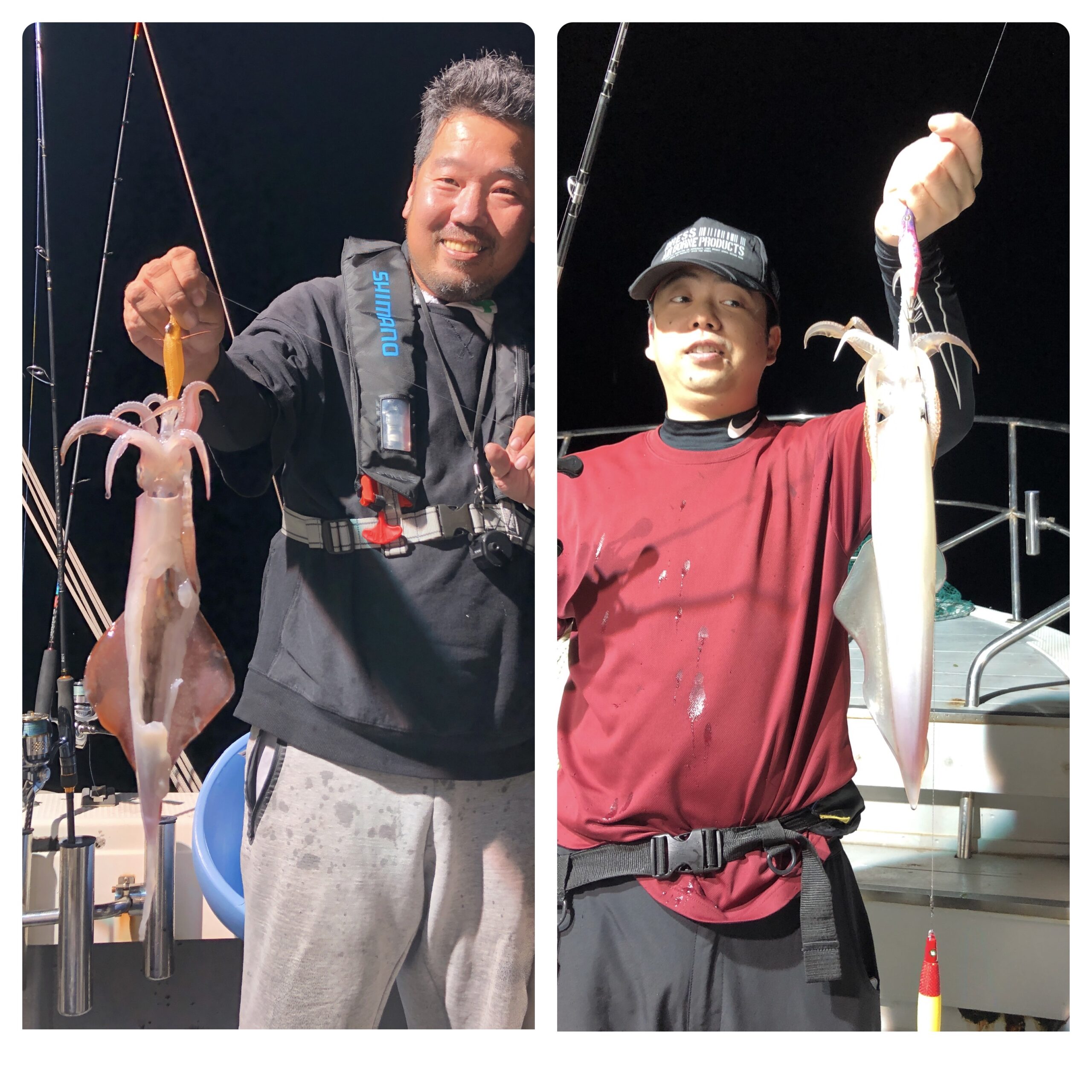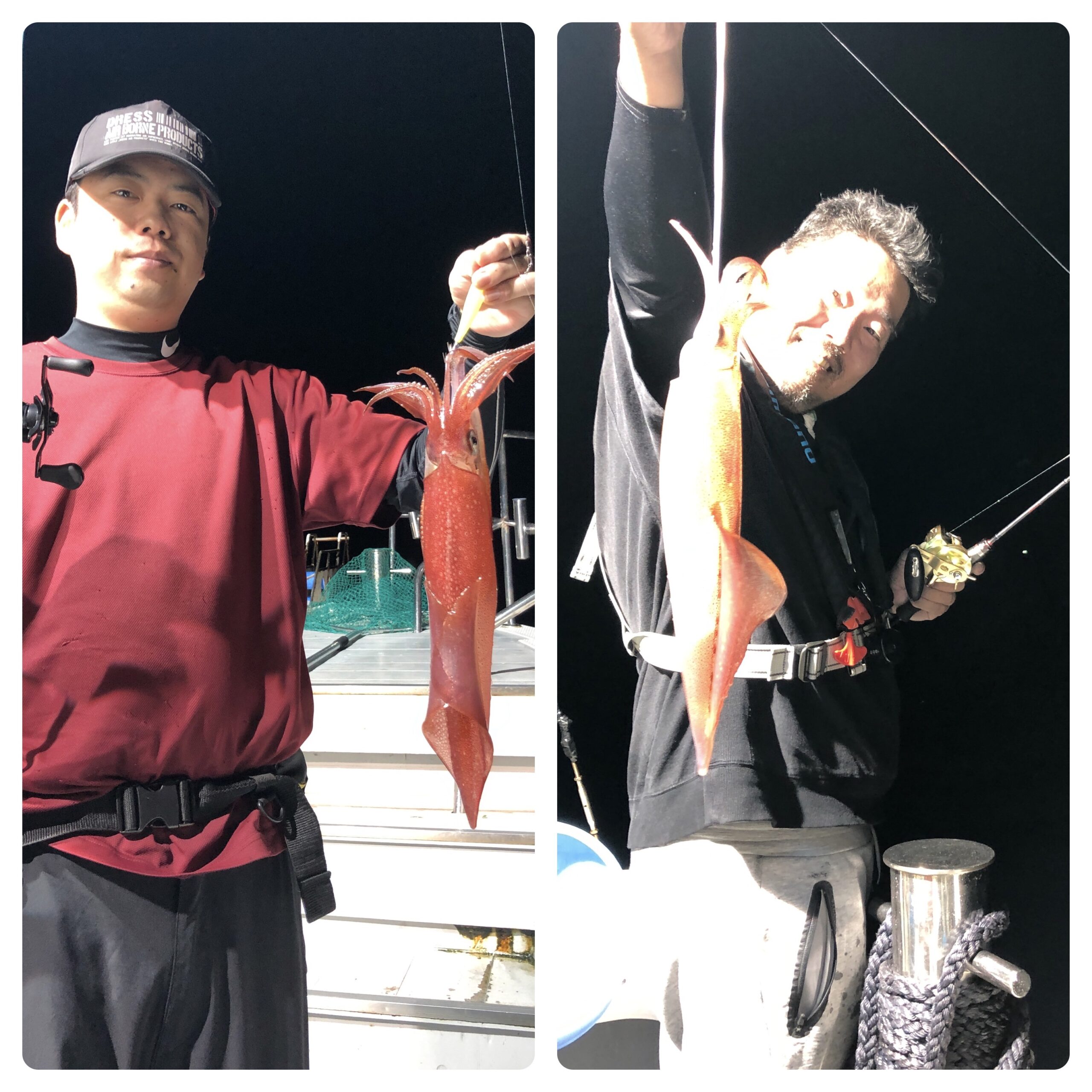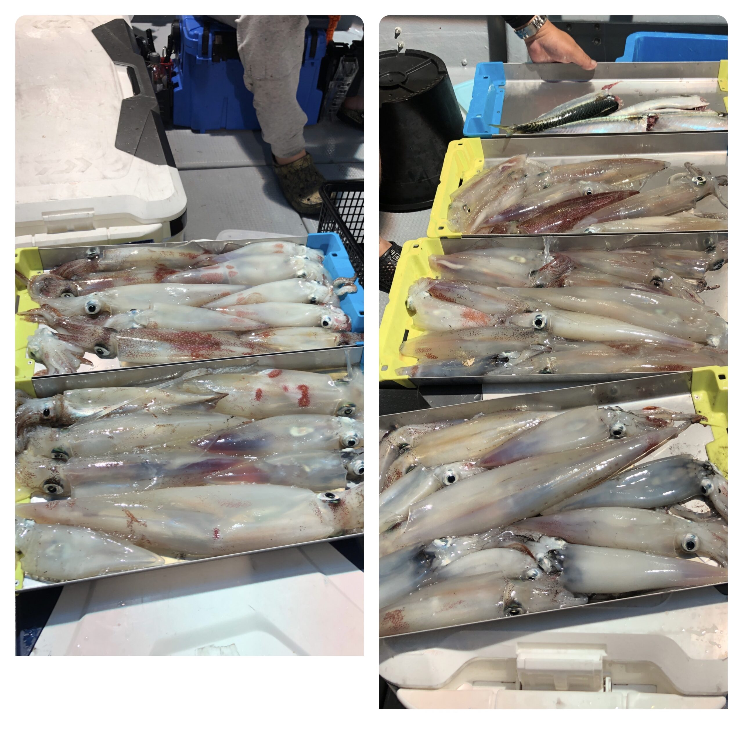 ベタ凪の中、少人数でイカ釣りに行きました!明るいうちは全く釣れません、、、汗。集魚灯点灯後の8時過ぎにやっと釣れ出し一安心しました。その後、コンスタントに釣れましたが、23