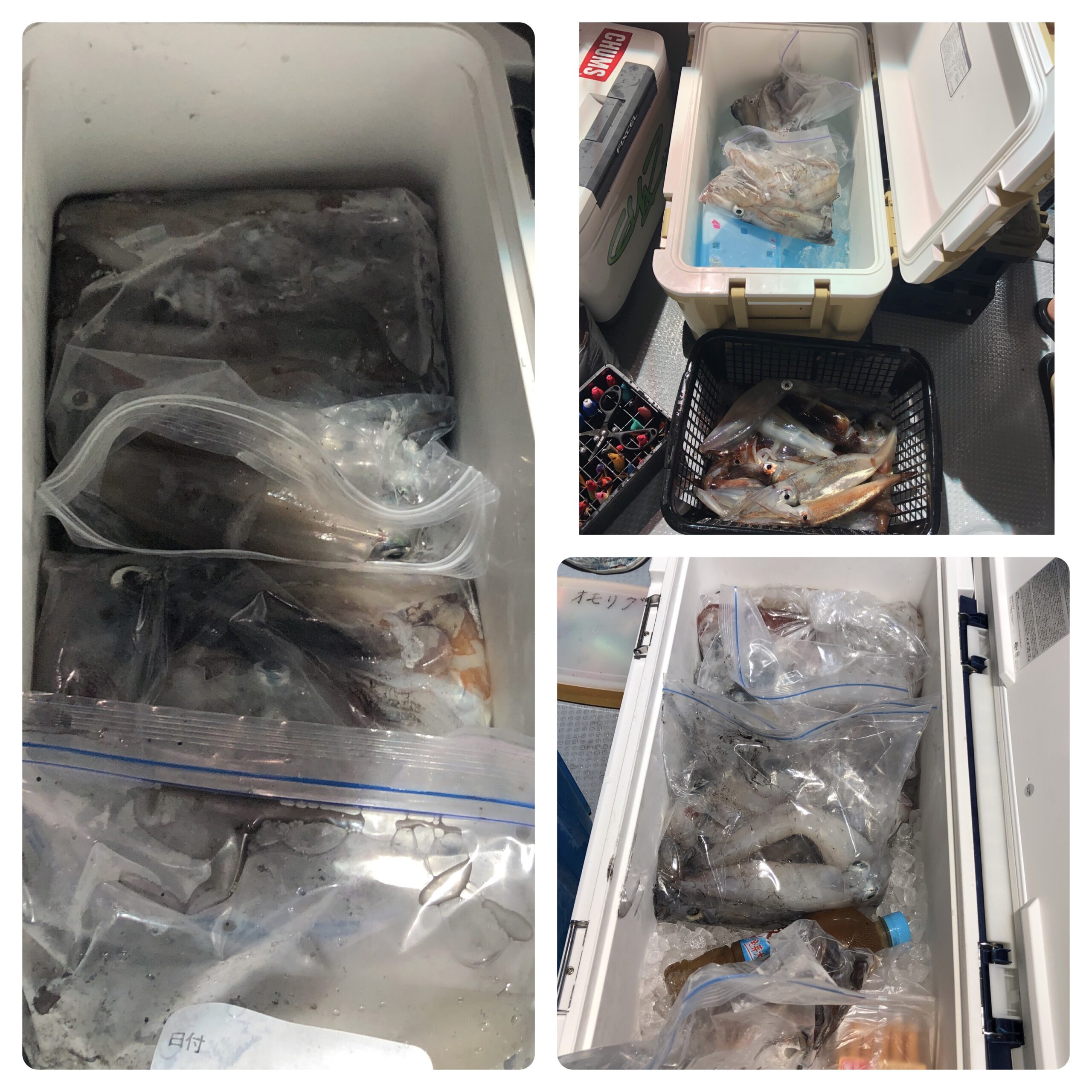 乗合便にてイカ釣りに行ってきました!明るいうちから小さな白イカが沢山釣れてました!たまに良型も混ざる感じでしたが小型が主体でした。集魚点灯後もよい感じで釣れてましたが22時頃から音信不通に、、、。移動後は納竿時刻までポロポロ釣れる程度でした。白イカ45〜22ハイ、船中355ハイ、スルメ多数。