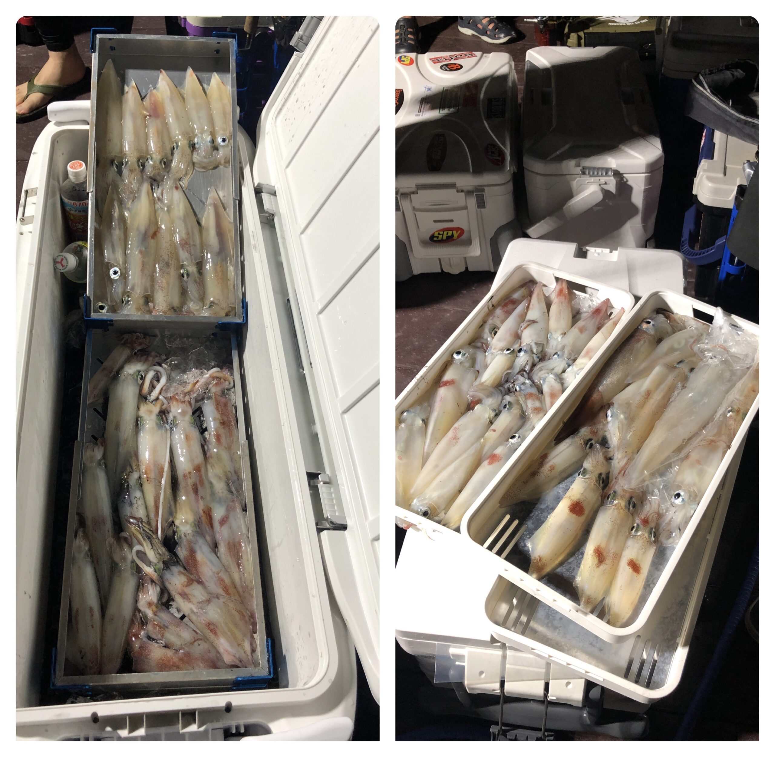 昨日のウネリが多少残る中、イカ釣りに行ってきました!20時頃からやっと釣れ出しましたが、これと言ったクライマックスがなく数を伸ばすことができませんでした。白イカ27〜14ハイ、船中200ハイ位。スルメ多数でした。