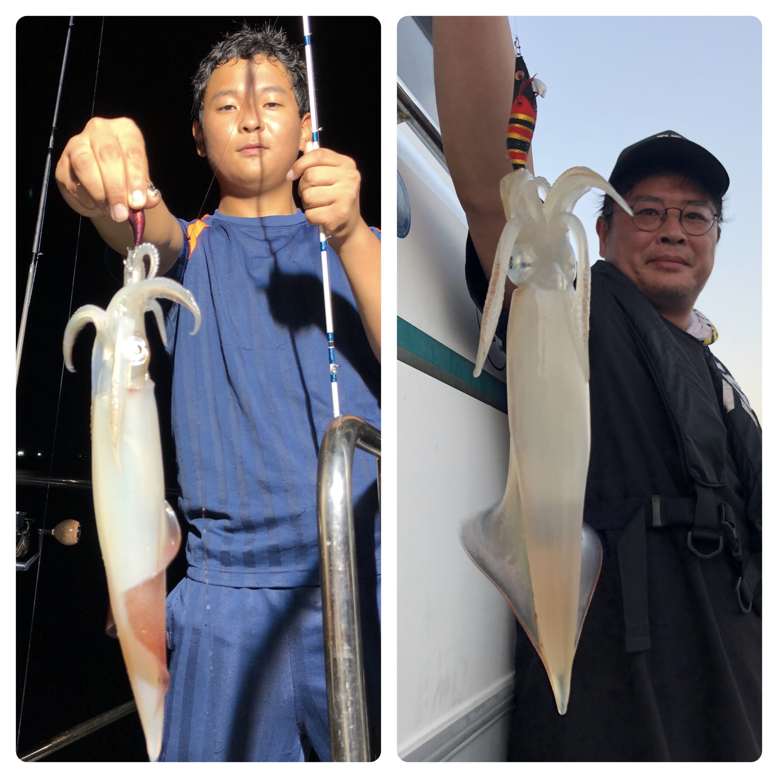 今日は、乗合いで白イカ釣りに行ってきました。思ったよりも東からのウネリがあり少し釣り難い状況でしたが、潮はそんなに早くなく30号で底取りが楽に出来る状況でした。明るいうちから少し釣れ出し集魚灯点灯後は、、、しばらく我慢、、、20時15分からポロポロ釣れ出し一安心の束の間、タイの猛攻により掛たイカは途中で餌食に、、、涙。釣果の半分近くはタイに喰われました。白イカTOP42、35〜15杯でした。