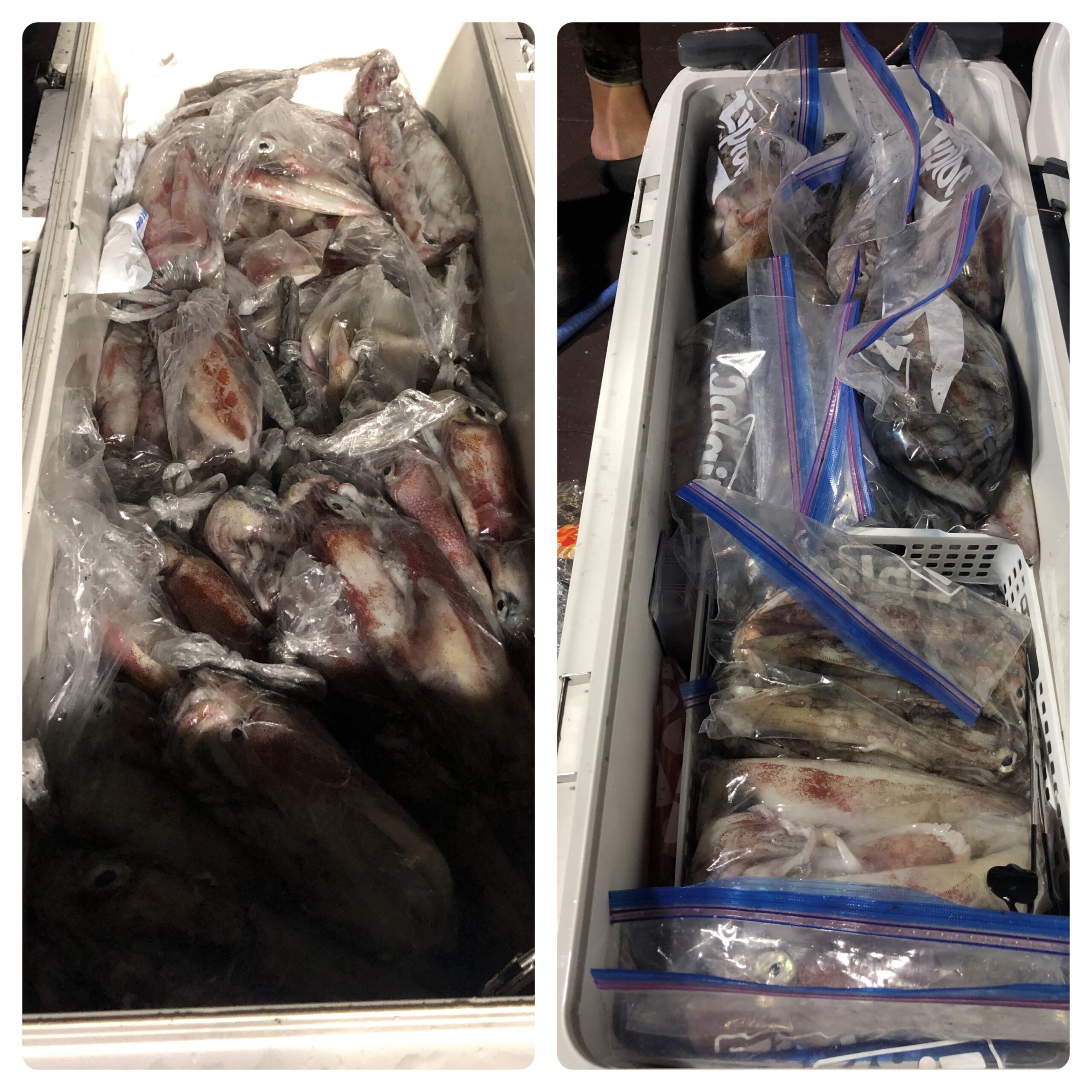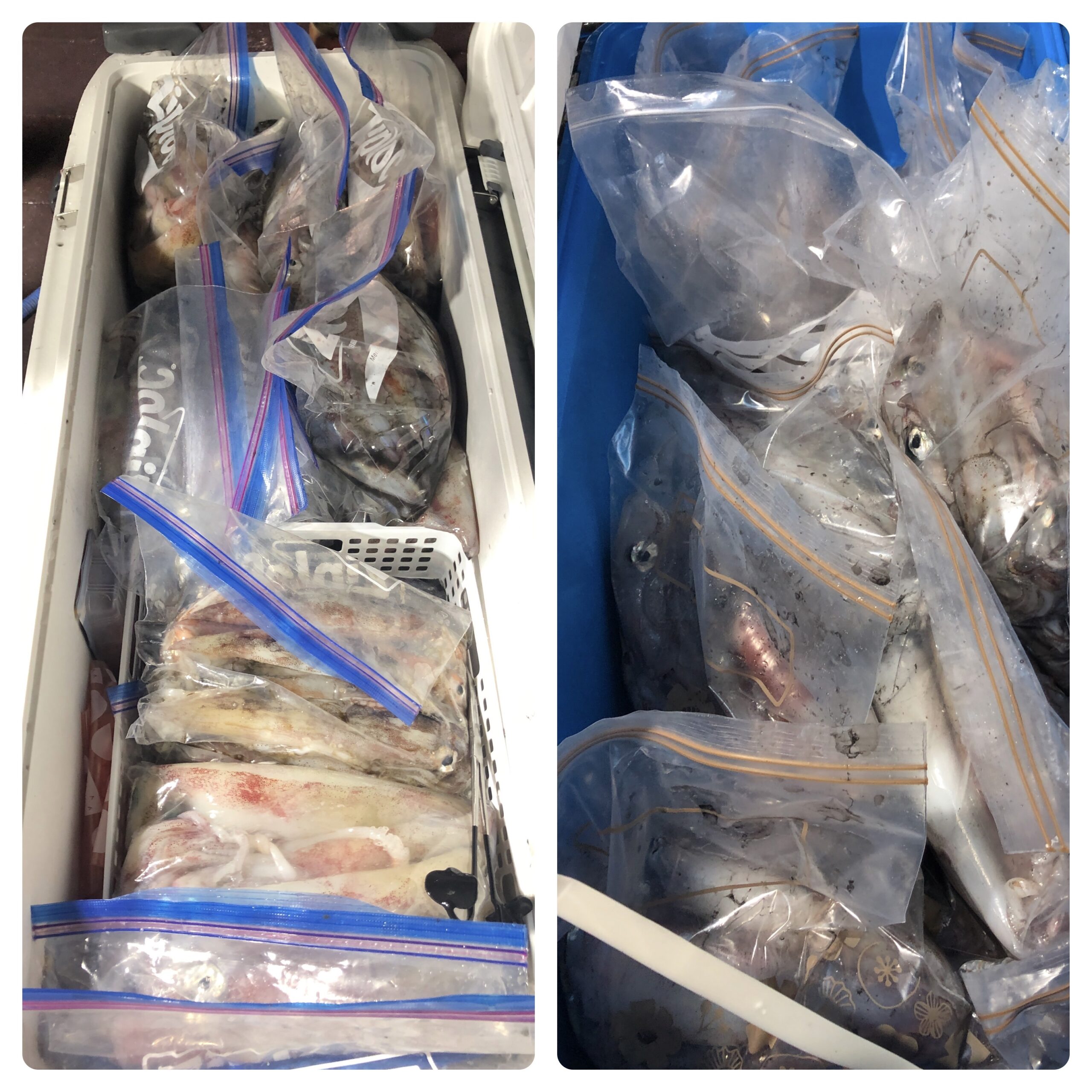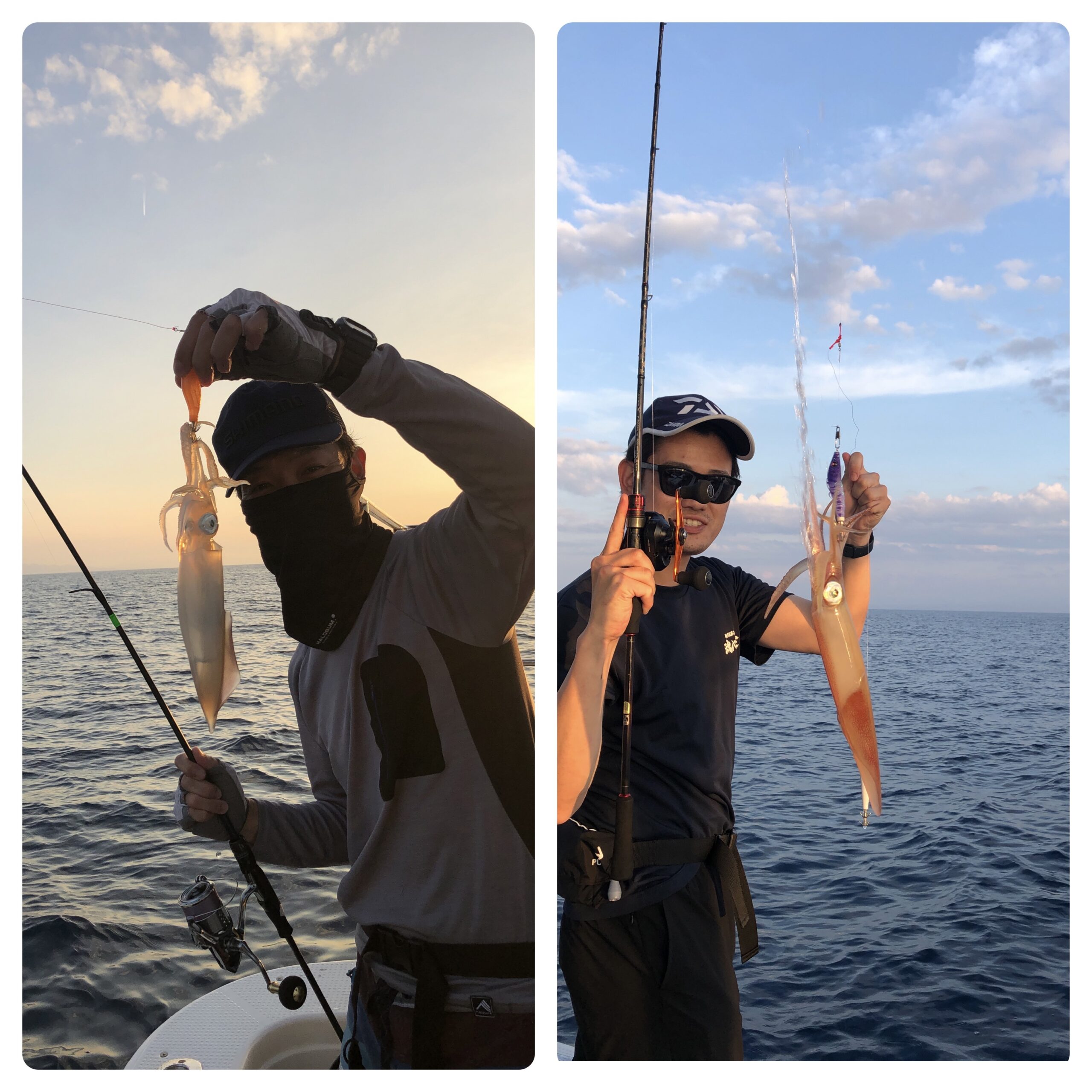 ベタ凪の中、乗合いで出船しました。沿岸では、釣果が厳しいのでお客様と相談し沖合の遠征になりました。深場では錨を落とさずスパンカーによる立て釣りで広範囲を流しジギングスタイルで、25号前後を使いバーチカルで釣ってもらいます。時間の経過とともにイカも35mから上に浮き出し効率良く釣ることができます。今日も、ずっっっっと釣れ続けました!TOP151、140〜114杯、一人だけサボったので88杯、1,436杯でした。