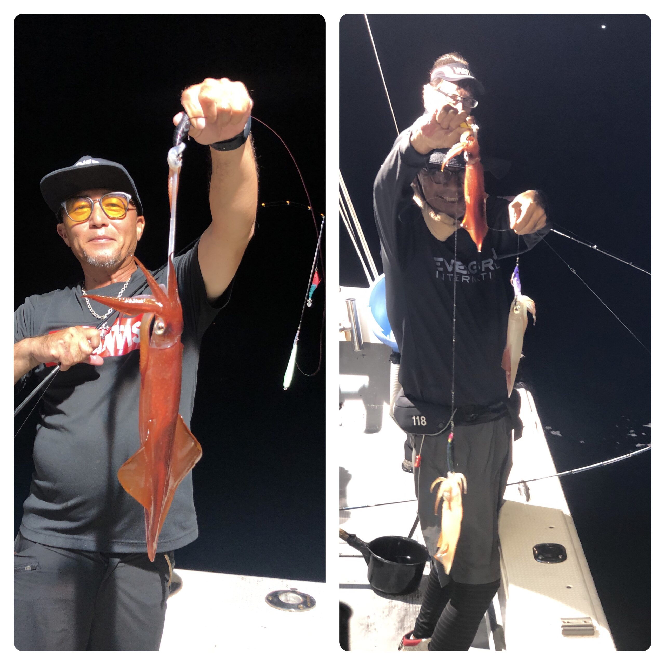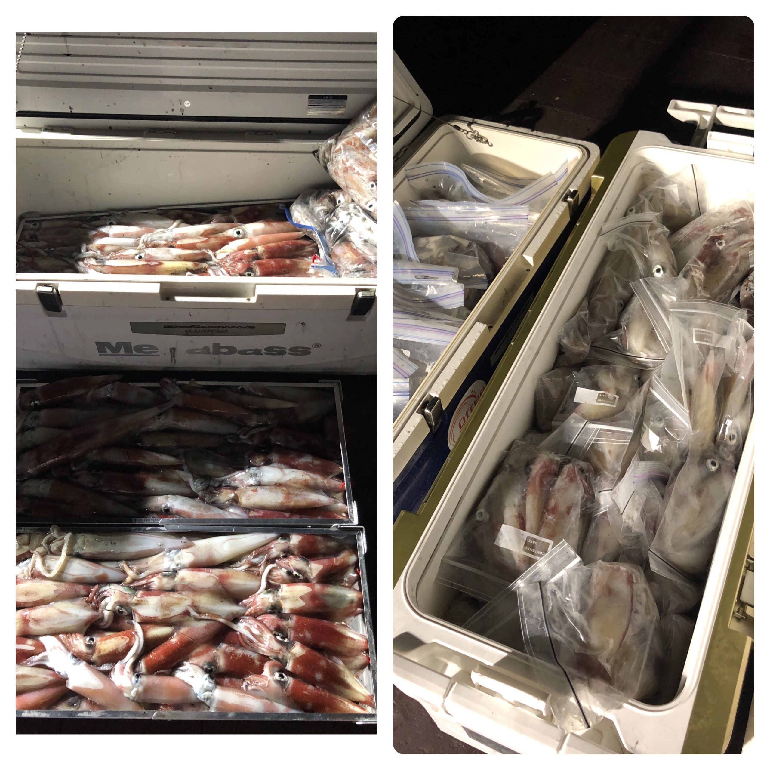 ベタ凪の中、乗合いで白イカ釣りに行きました。お客様と相談の上、沖合の遠征になりました。深場では錨を落とさずスパンカーによる立て釣りで広範囲を流しジギングスタイルで、25号前後を使いバーチカルで釣ってもらいます。到着直後から終了時刻まで釣れてました!TOP155、全員が100杯以上釣れた時点で終了しました。ほとんどの方が、100杯以上釣れた時点で集計してないので、合計数は不明です(笑)。