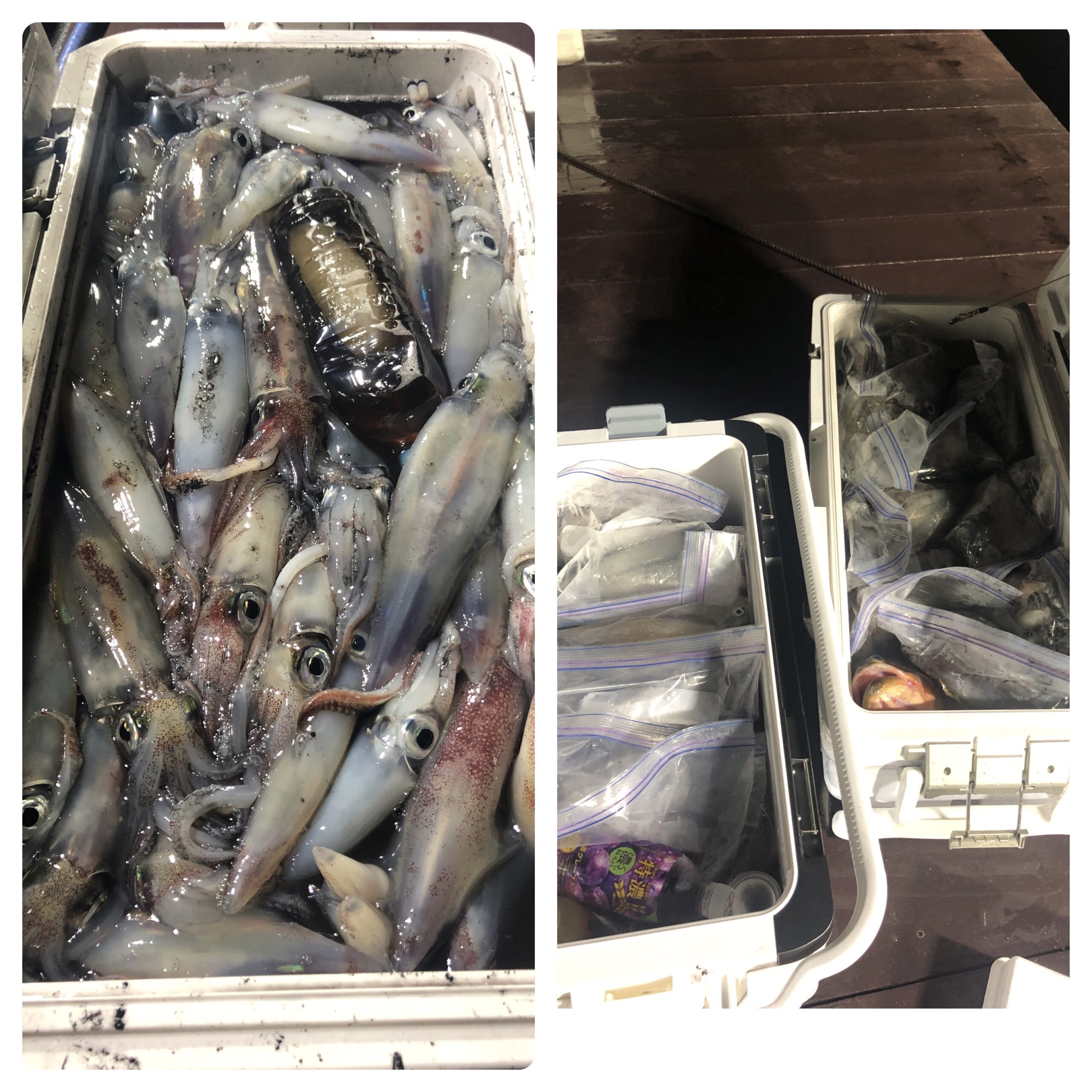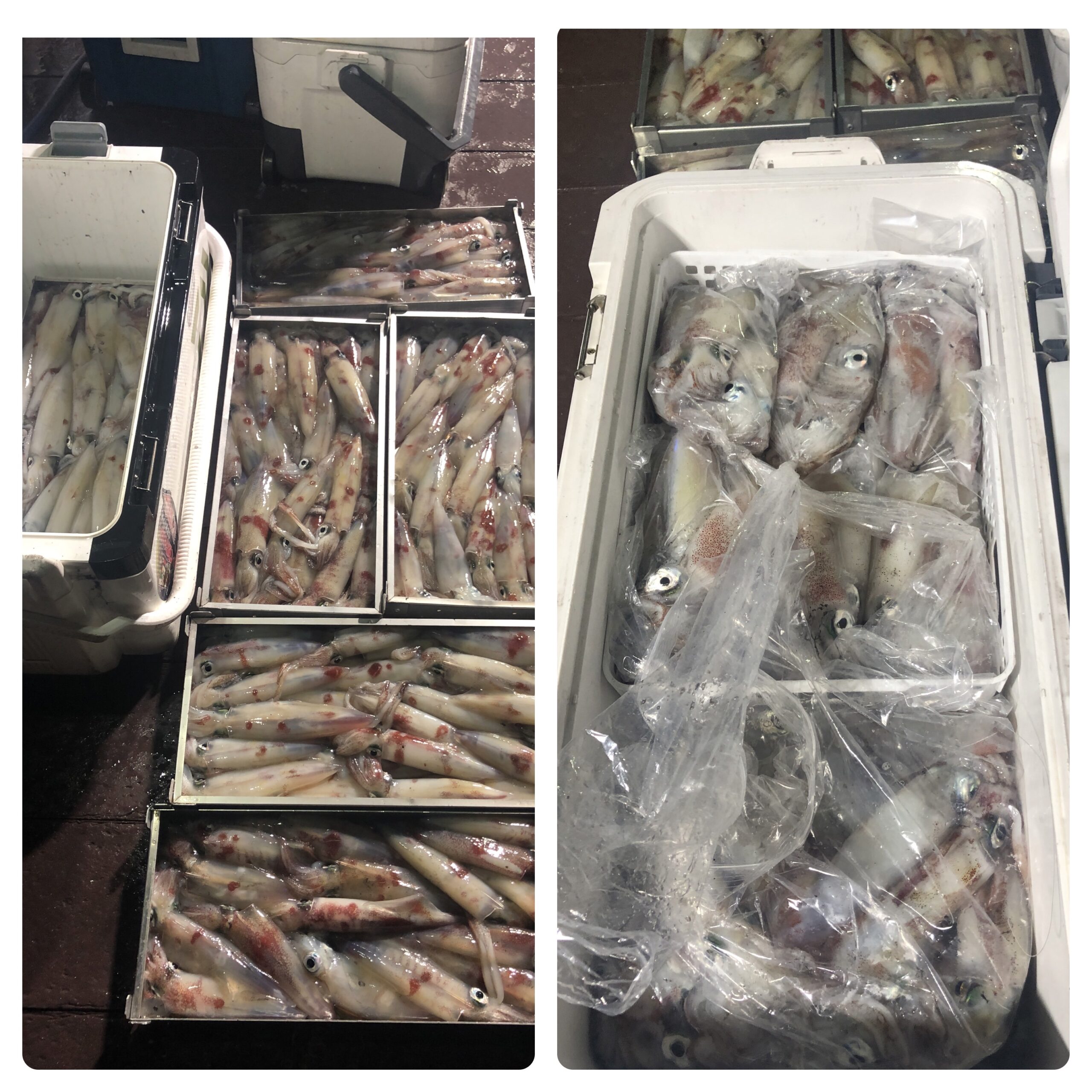 乗合いで出船しました!今日も明るいうちから、ポロポロ釣れ夜が深まるとともにペースが上がり入れノリに!昨晩と、同じポイントなのにイカ群が変わり大型があまり釣れず、ぶどうイカがかなり混ざり出してきました。もしかして、境港イカバブル長期化するかも(笑)。白イカTOP188、177〜100杯、連日1,000杯越えが普通なので、釣れなくなった時が怖い、、、汗。スルメも増えてます。