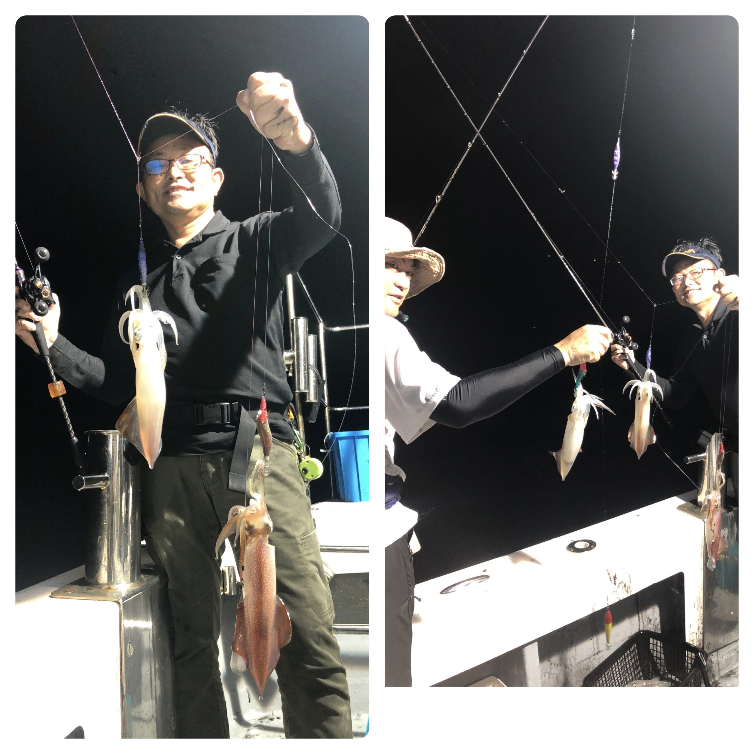 乗合いで出船しました!今日も明るいうちから、ポロポロ釣れ夜が深まるとともにペースが上がり入れノリに!TOP190、188〜120杯くらい。船中1,000杯オーバー、スルメ多数。