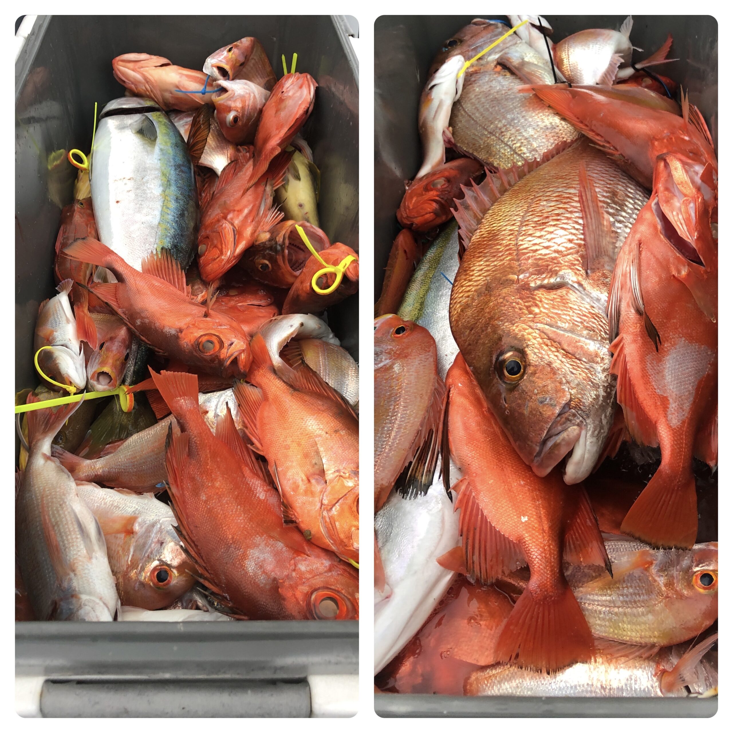 雨の中、隠岐の島に行ってきました!隠岐の島海域に到着すると雨も止み潮も程良く流れており、開始直後からチカメや青物が良く釣れました!チカメは、船中70枚前後は釣れました。今日も、釣果のカナメとなるレンコが良い仕事をしてくれました(笑)