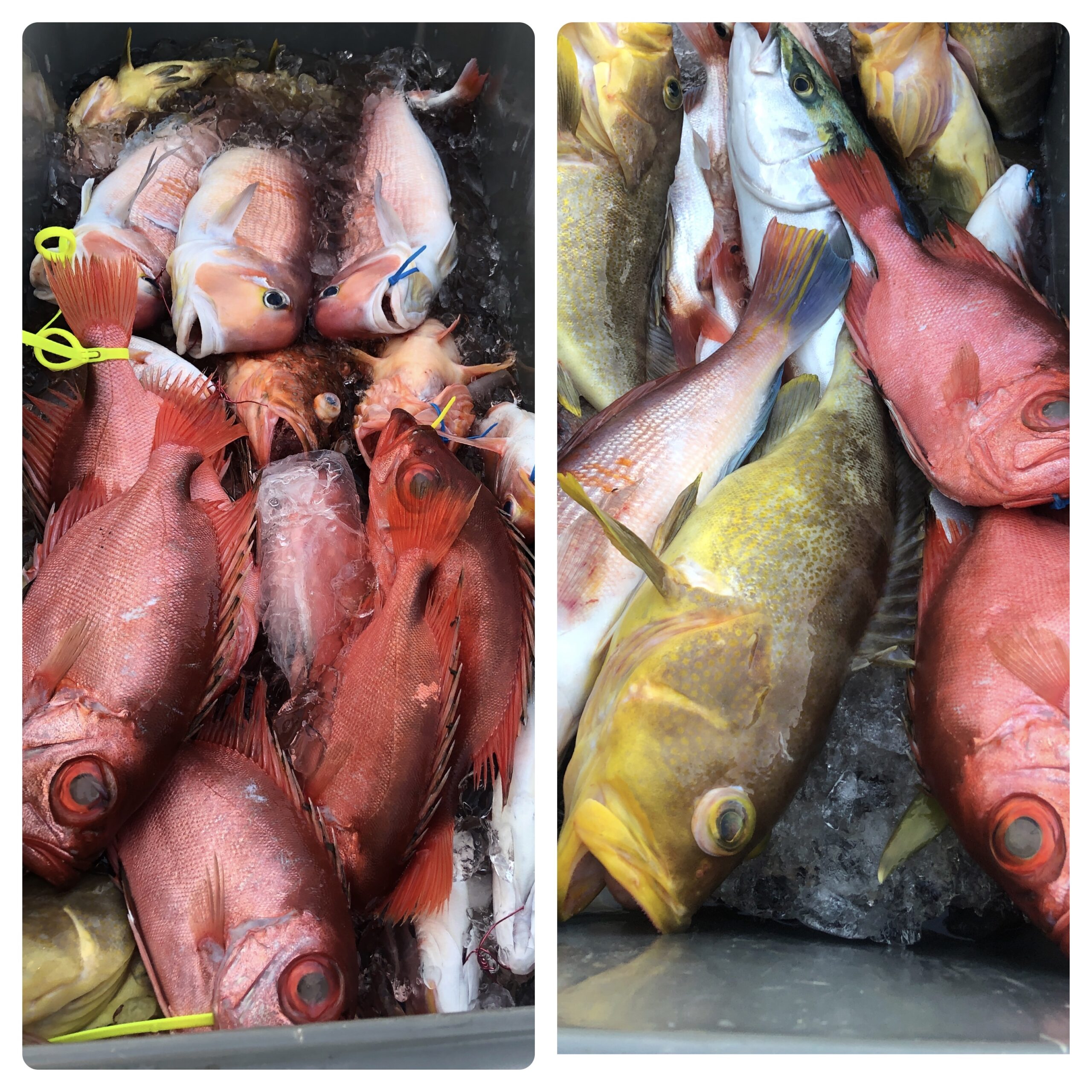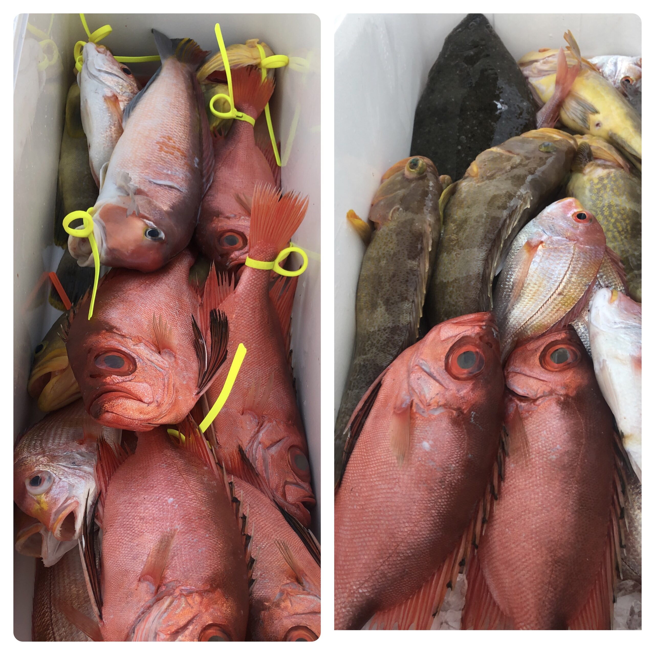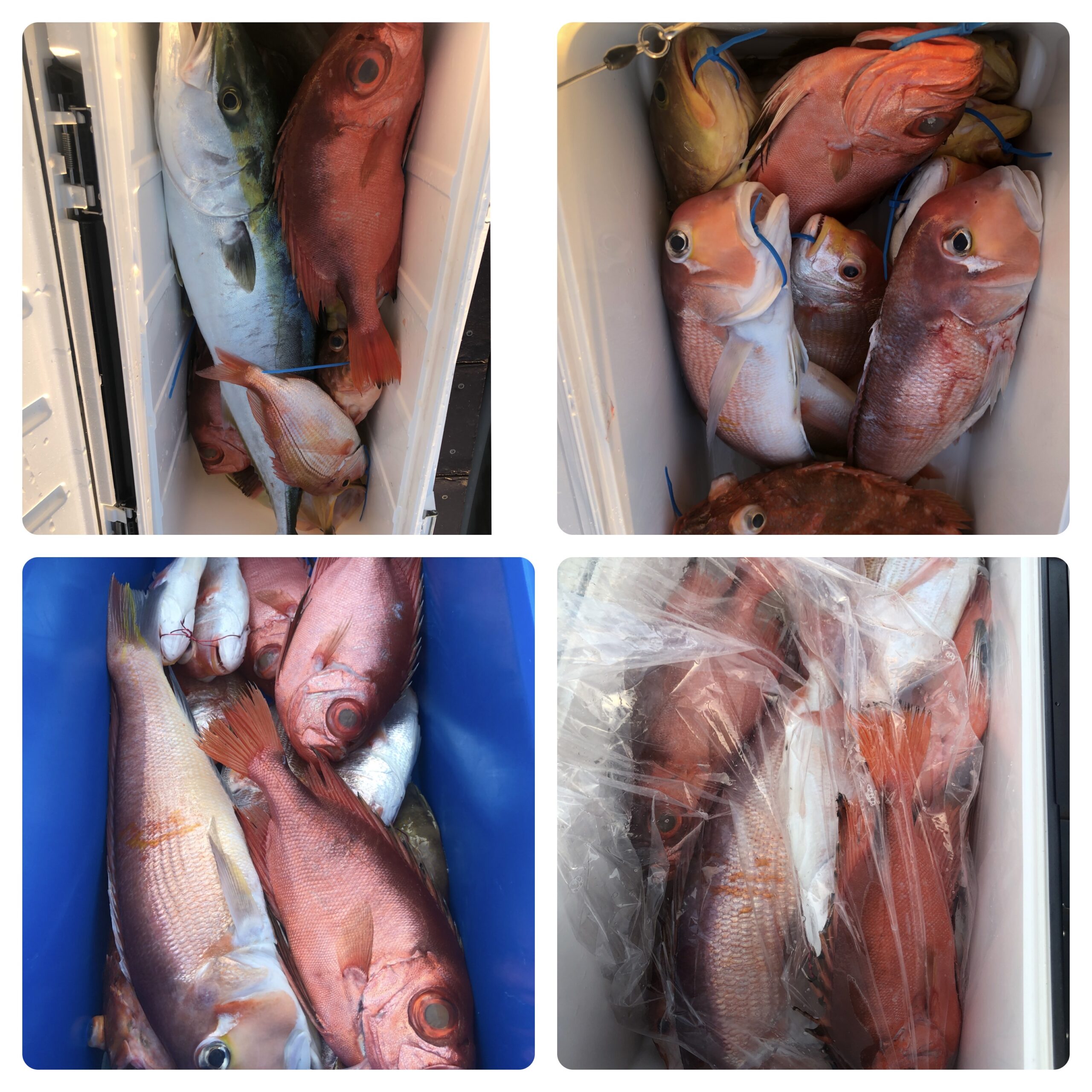 快晴の中、隠岐の島海域に行ってきました!波が高く釣り難い状況でしたが、チカメは全員安打できました。船酔いされた方は釣果出せず気の毒でした、、、汗。