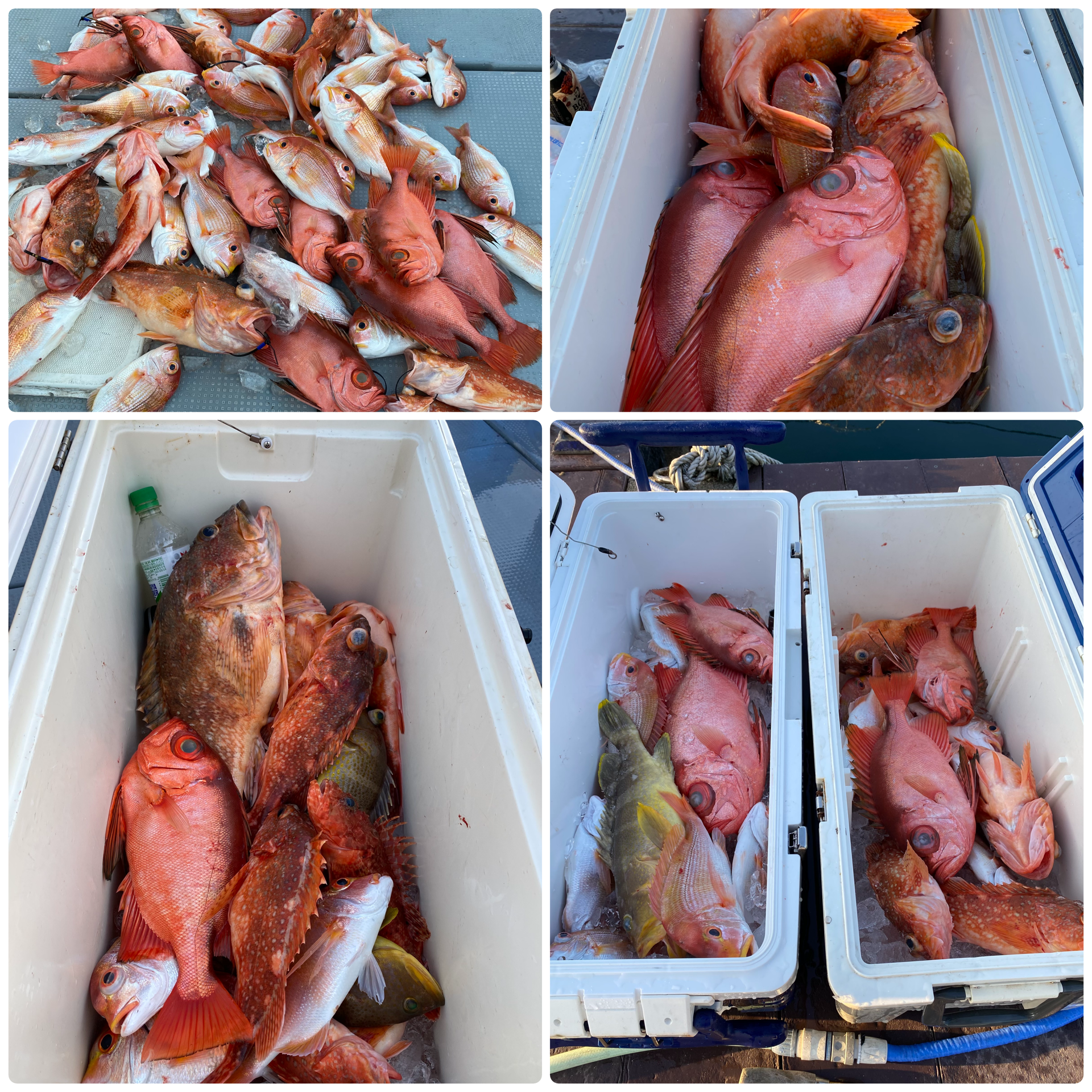 快晴凪の中、隠岐の島に行ってきました!今日は潮の流れが良い感じで、終日アタリも多く楽しい釣行になりました。デキッキに散乱してる魚の写真は2人分です。