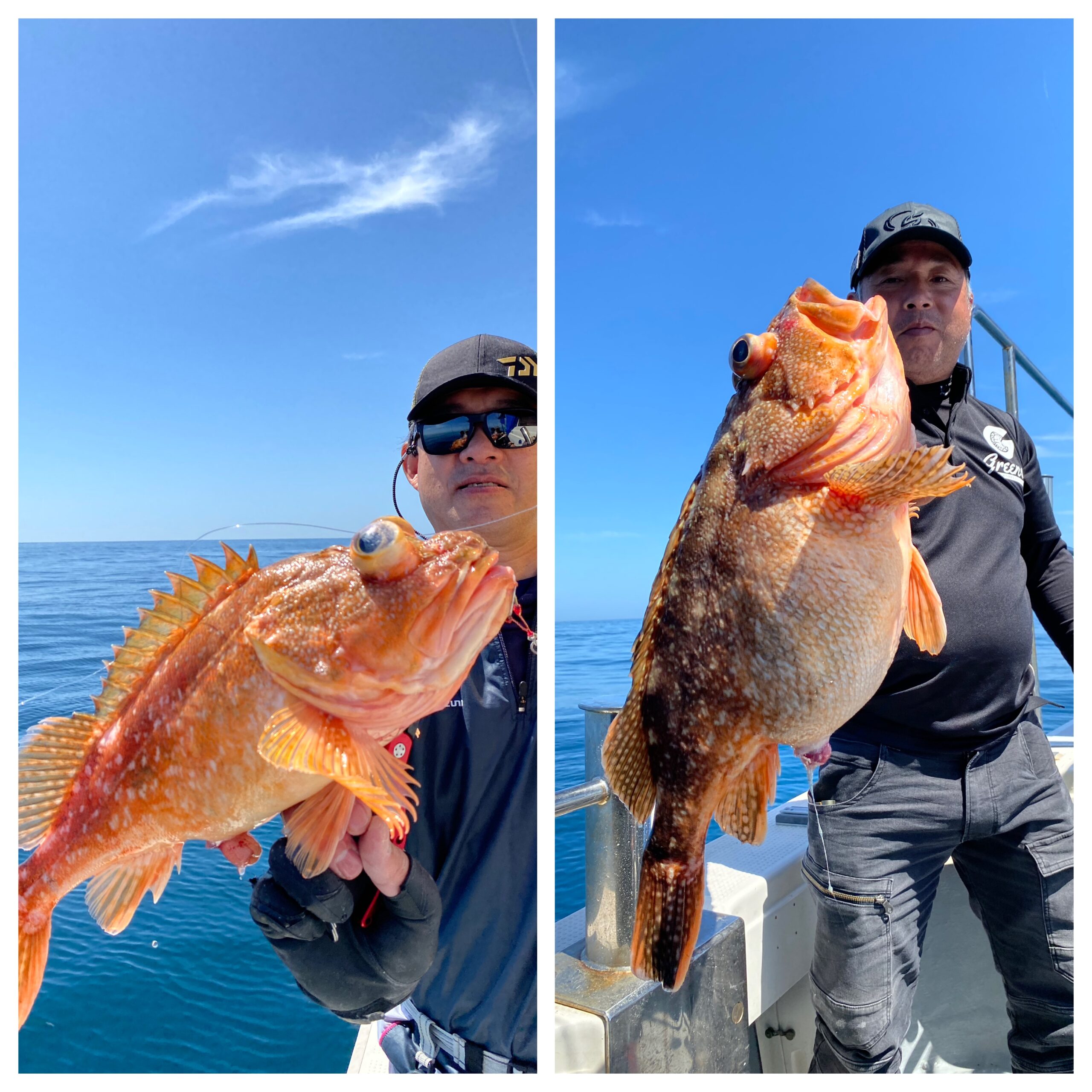 快晴ベタ凪の中、隠岐の島に行ってきました!今日は、昨日の苦戦が嘘に思えるくらい、モリモリ反応では誰でも釣れました、、、笑。とくにウッカリカサゴの活性がMAXでゴジラ級が多発しました。